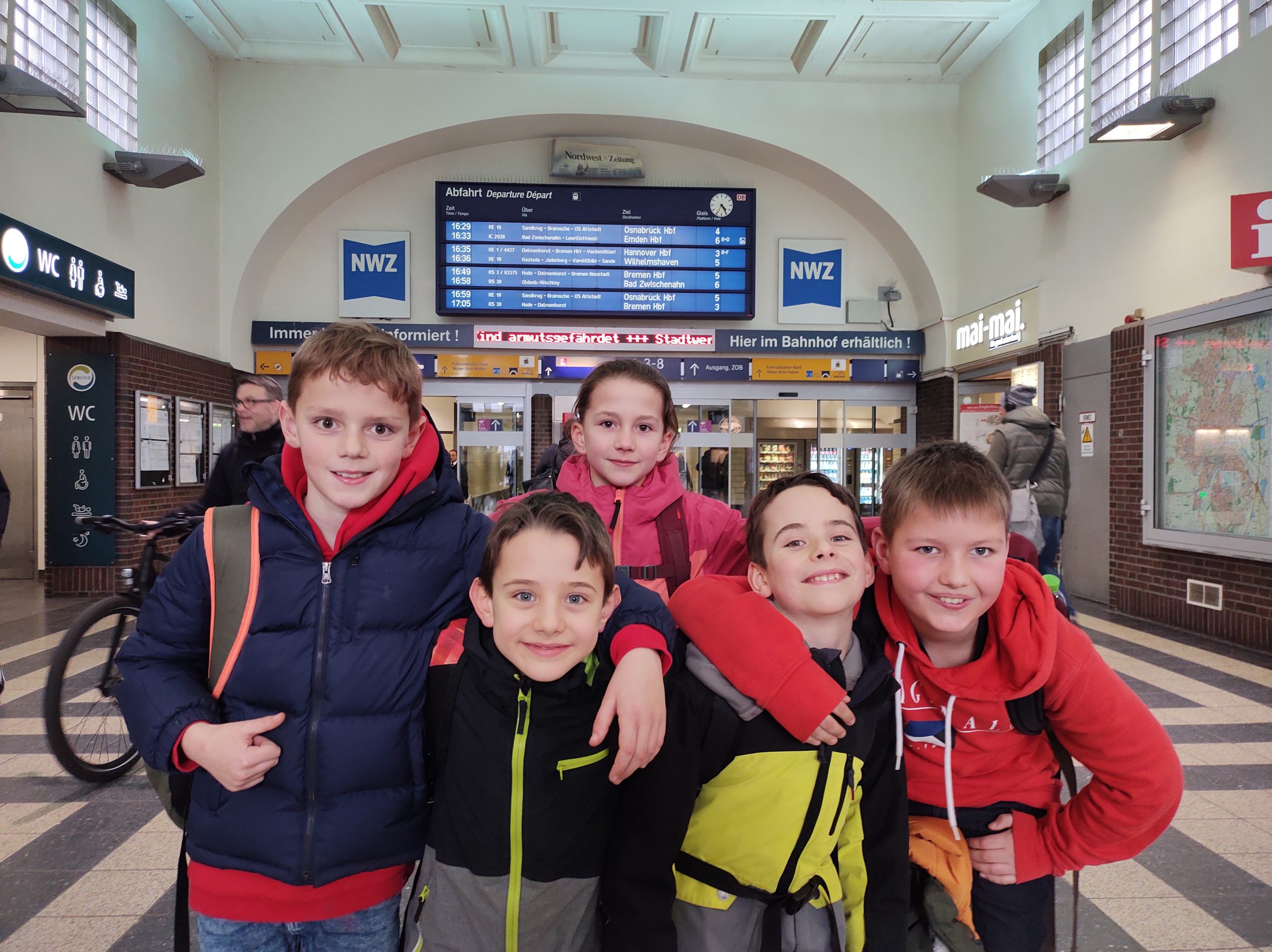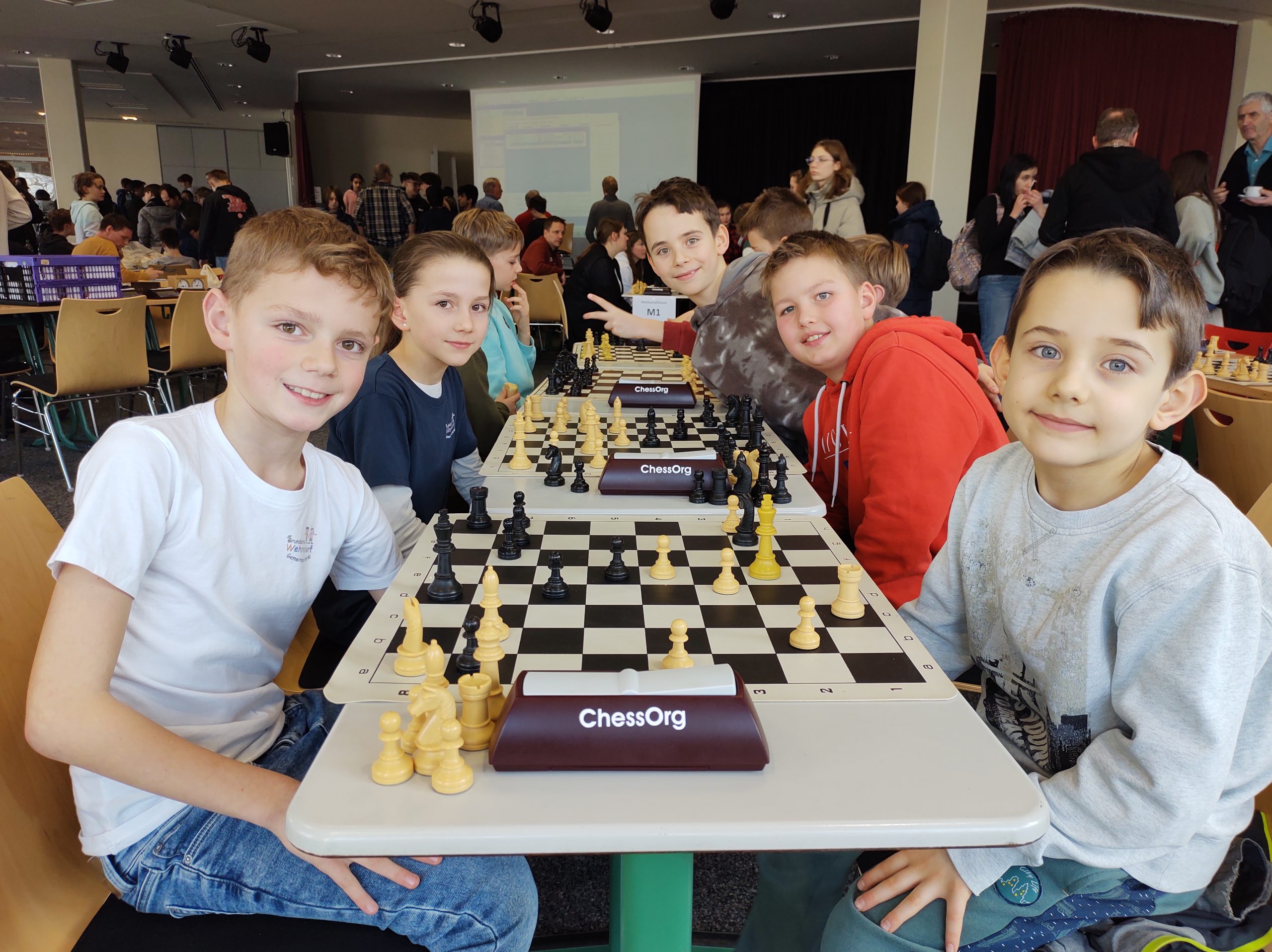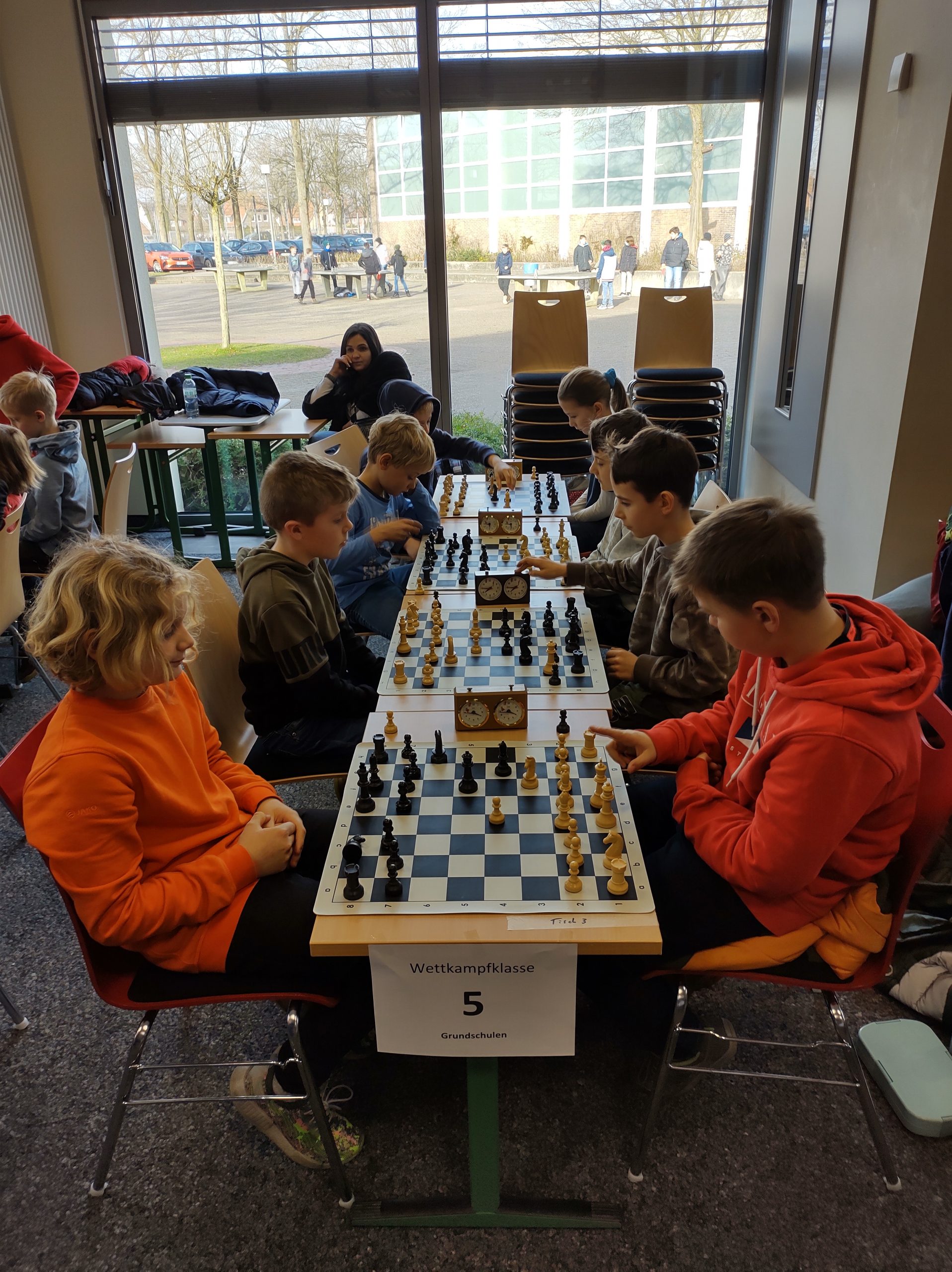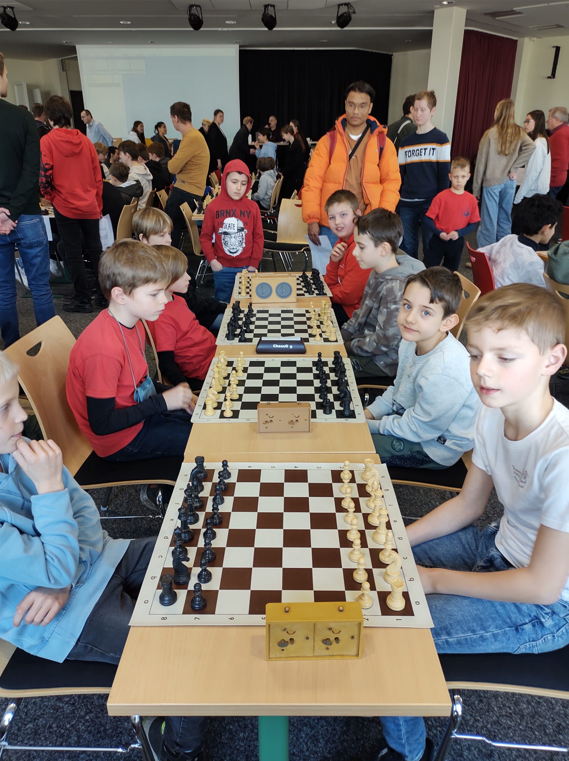Nach der aufregenden, aber interessanten Anreise per Bahn nach Bad Zwischenahn, startete das Team gegen den Sieger aus dem Kreis Oldenburg, die GS Grüner Kamp Delmenhorst. Die Grundschule Wehrendorf bestand aus folgender Formation: Brett 1: Max Tontrup, Brett 2: Levi Neudert, Brett 3: Lias Neudert, Brett 4: Nora Höckmann sowie dem Reservespieler Jonah Rich. Die Begegnung gegen die Delmenhorster war sehr eindeutig und ging vor allem an Brett 1 durch eine sehr erfolgreich gestaltete Eröffnung blitzschnell vorüber. Dabei ließ der Osnabrücker Kreismeister aus Wehrendorf dem Kreismeister aus Oldenburg keine Chance und so hieß es am Ende 3:1 für das Team um Kapitän Max Tontrup. In Runde zwei ging es gegen die GS Iprump-Stickgras aus Delmenhorst. Erneut siegten Max, Levi und Nora schnell. Ergänzt durch ein Remisangebot an Brett 3 durch den Zweitklässler Lias Neudert stand somit am Ende ein souveränes 3,5:0,5 zu Buche. Anschließend folgte ein Duell gegen den Vize aus dem Emsland, die GS Wietmarschen Team 2. Auch dieser Gegner stellte für die Grundschüler aus Wehrendorf keine große Hürde dar. Mit einem lockeren 4:0 war innerhalb kürzester Zeit eine weitere Begegnung erfolgreich beendet. Besser hätte der Auftakt bei diesem Bezirksfinale nicht laufen können. Grundlage des Erfolges waren einmal mehr schöne Mittelspielmanöver wie Spieß, Fesselungen und Springergabeln. Hier war für jeden Zuschauer etwas dabei.