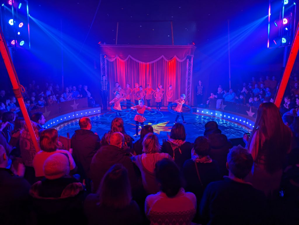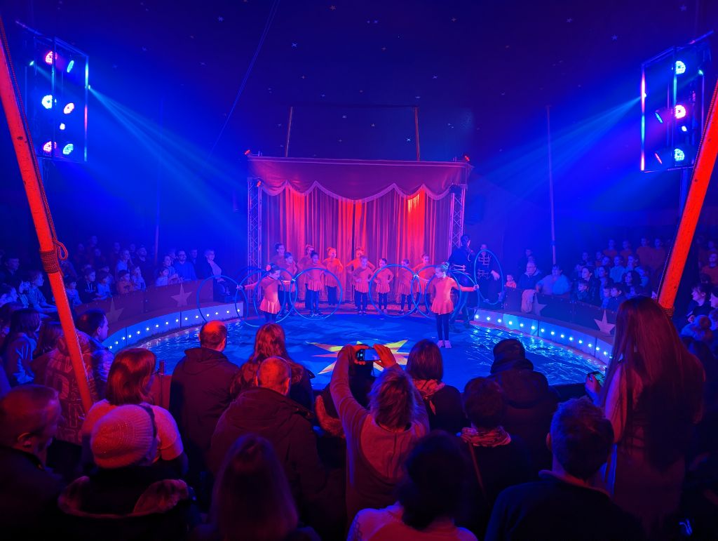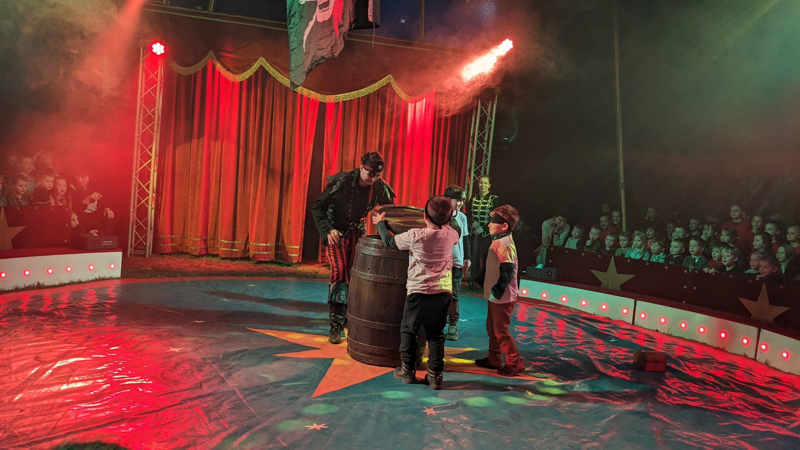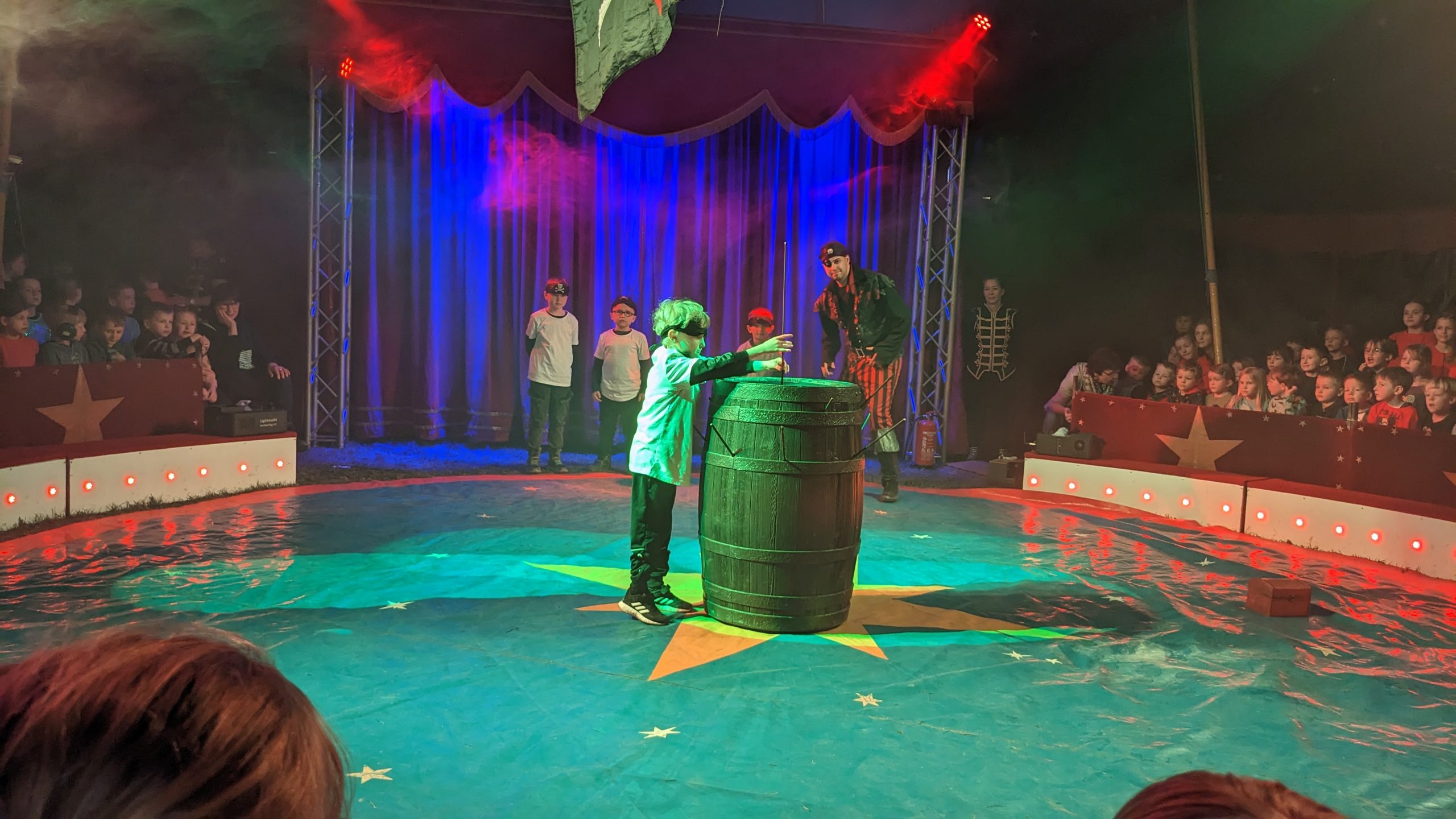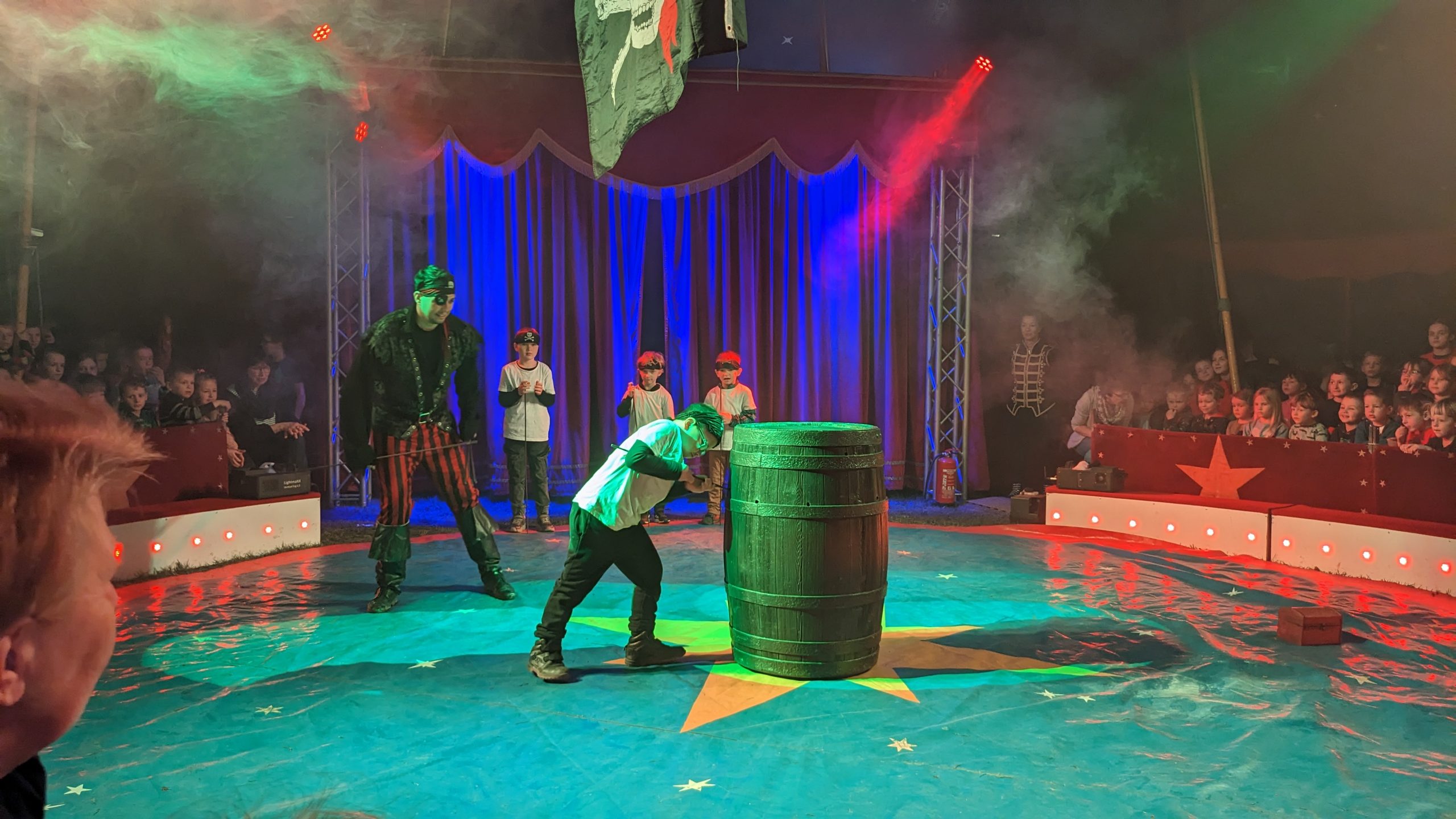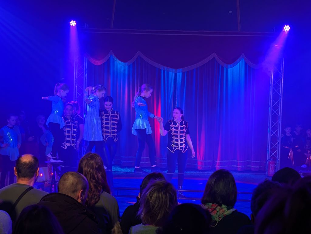 Einmal selber Clown sein oder mit Eleganz über ein Seil balancieren, davon haben viele Kinder schon einmal geträumt. Die Artisten des Kinderzirkus Aron übten in verschiedenen Gruppen mit Kindern von Klasse 1 bis 4 die unterschiedlichsten Zirkusnummern ein. Allen war klar: Am Ende der Woche sind wir die Stars in der Manege! Mit dementsprechendem Ehrgeiz wurde über vier Tage jeden Vormittag fleißig trainiert, sodass es am Donnerstagabend in der Vorstellung, die zum größten Teil von Eltern, Geschwistern und weiteren Verwandten besucht wurde, dann hieß: „Manege frei für eure Kinder!“ Nachdem Sandra Sperlich vom Kinderzirkus Aron die Besucher im vollbesetzten Zirkuszelt begrüßt hatte, ging es auch direkt los. Den Anfang machten die Hula-Hoop-Künstler, die im bunten Scheinwerferlicht ihre Reifen an Bauch, Arm und Hals drehten. Auch ein Riesenreifen mit gewaltigem Durchmesser kam dabei zum Einsatz. Als Finale wurde am Ende sogar ein brennender Reifen von einer jungen Artistin souverän um die Hüften geschwungen.
