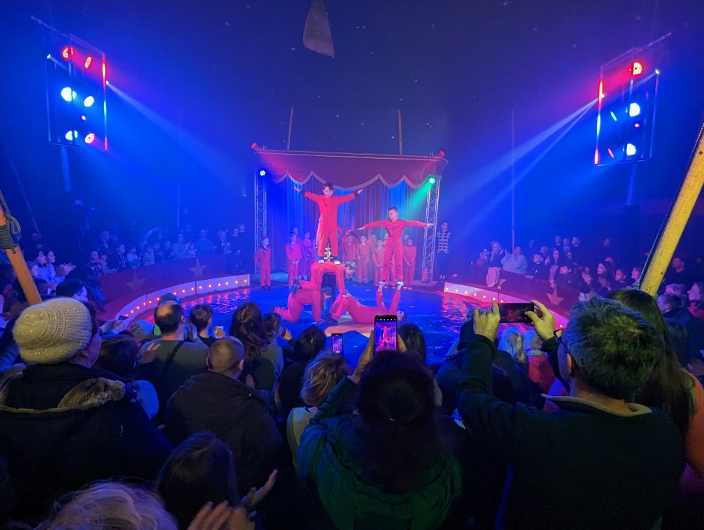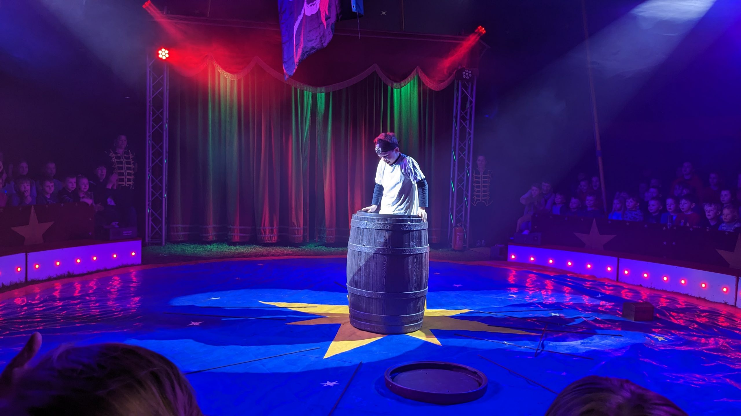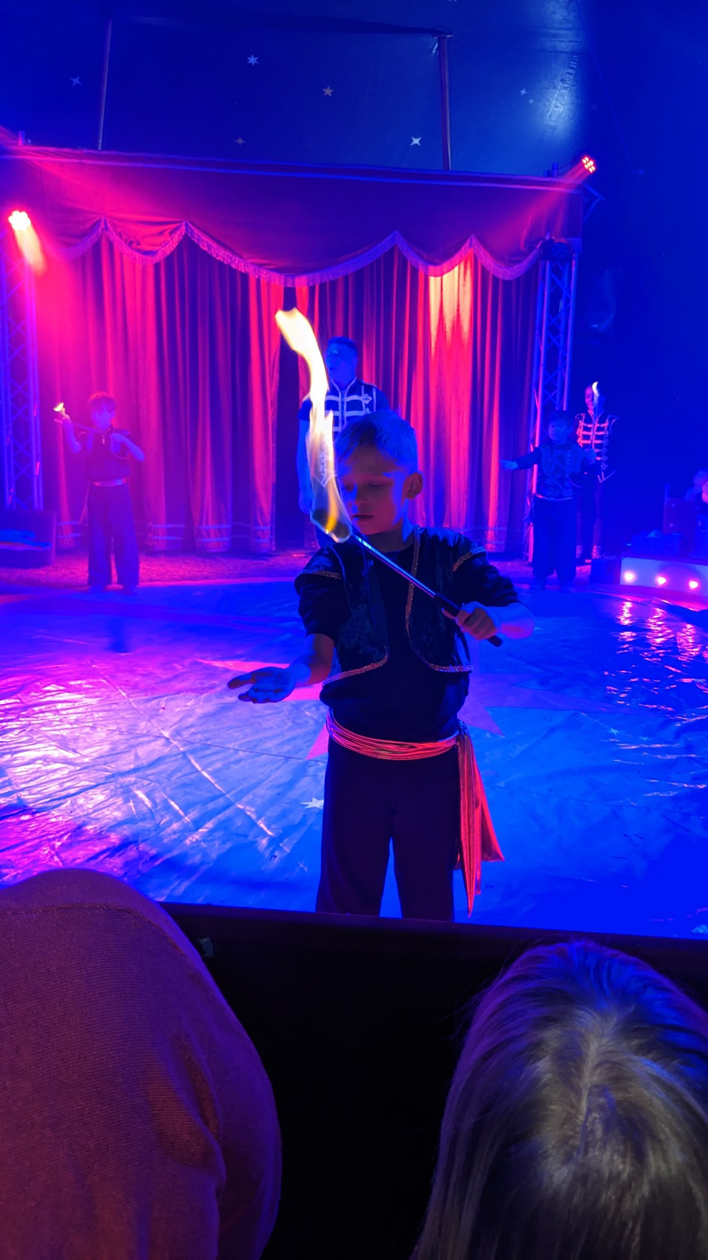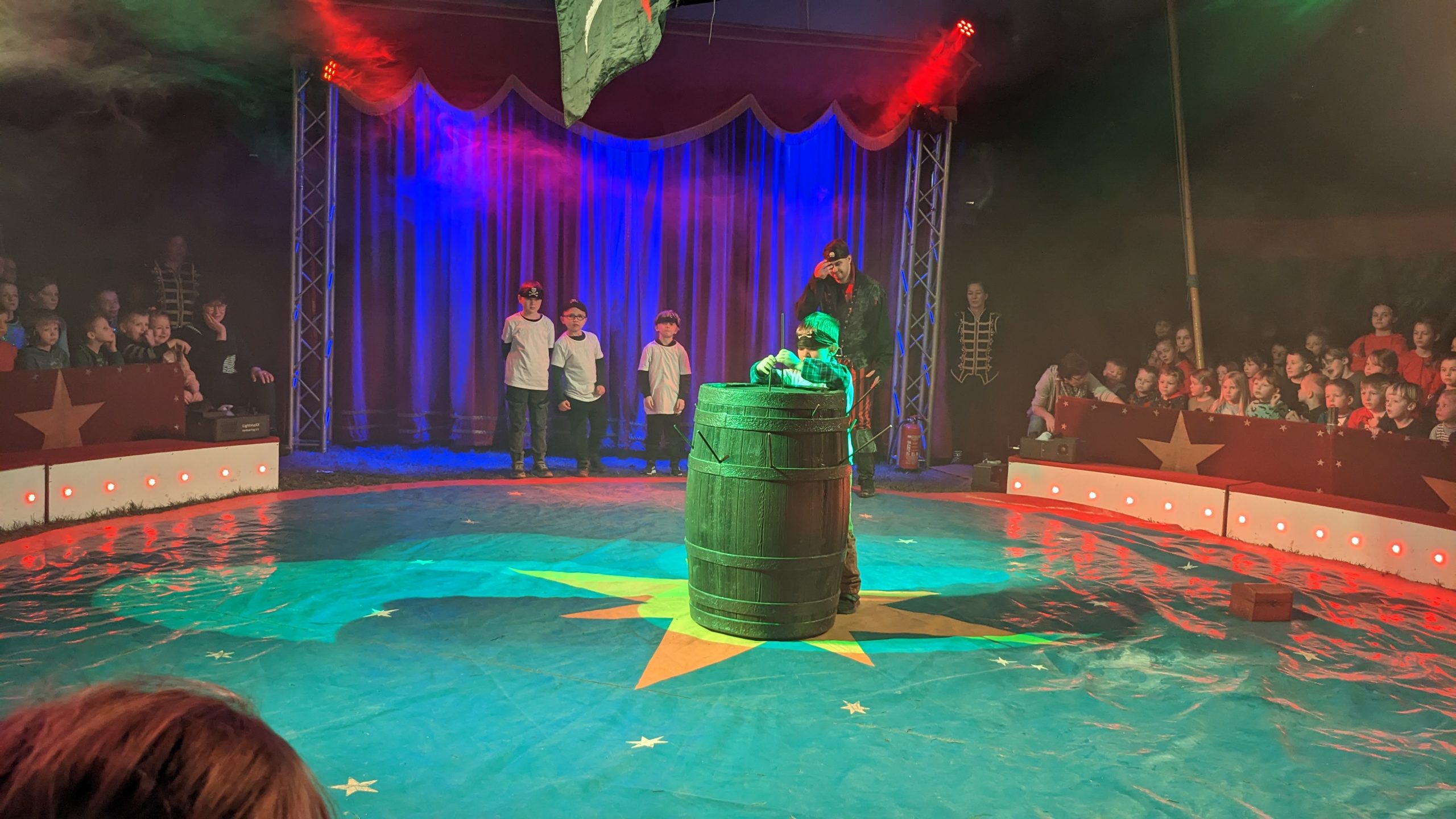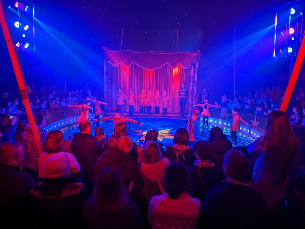 Einmal selber Clown sein oder mit Eleganz über ein Seil balancieren, davon haben viele Kinder schon einmal geträumt. Die Artisten des Kinderzirkus Aron übten in verschiedenen Gruppen mit Kindern von Klasse 1 bis 4 die unterschiedlichsten Zirkusnummern ein. Allen war klar: Am Ende der Woche sind wir die Stars in der Manege! Mit dementsprechendem Ehrgeiz wurde über vier Tage jeden Vormittag fleißig trainiert, sodass es am Donnerstagabend in der Vorstellung, die zum größten Teil von Eltern, Geschwistern und weiteren Verwandten besucht wurde, dann hieß: „Manege frei für eure Kinder!“ Nachdem Sandra Sperlich vom Kinderzirkus Aron die Besucher im vollbesetzten Zirkuszelt begrüßt hatte, ging es auch direkt los. Den Anfang machten die Hula-Hoop-Künstler, die im bunten Scheinwerferlicht ihre Reifen an Bauch, Arm und Hals drehten. Auch ein Riesenreifen mit gewaltigem Durchmesser kam dabei zum Einsatz. Als Finale wurde am Ende sogar ein brennender Reifen von einer jungen Artistin souverän um die Hüften geschwungen.