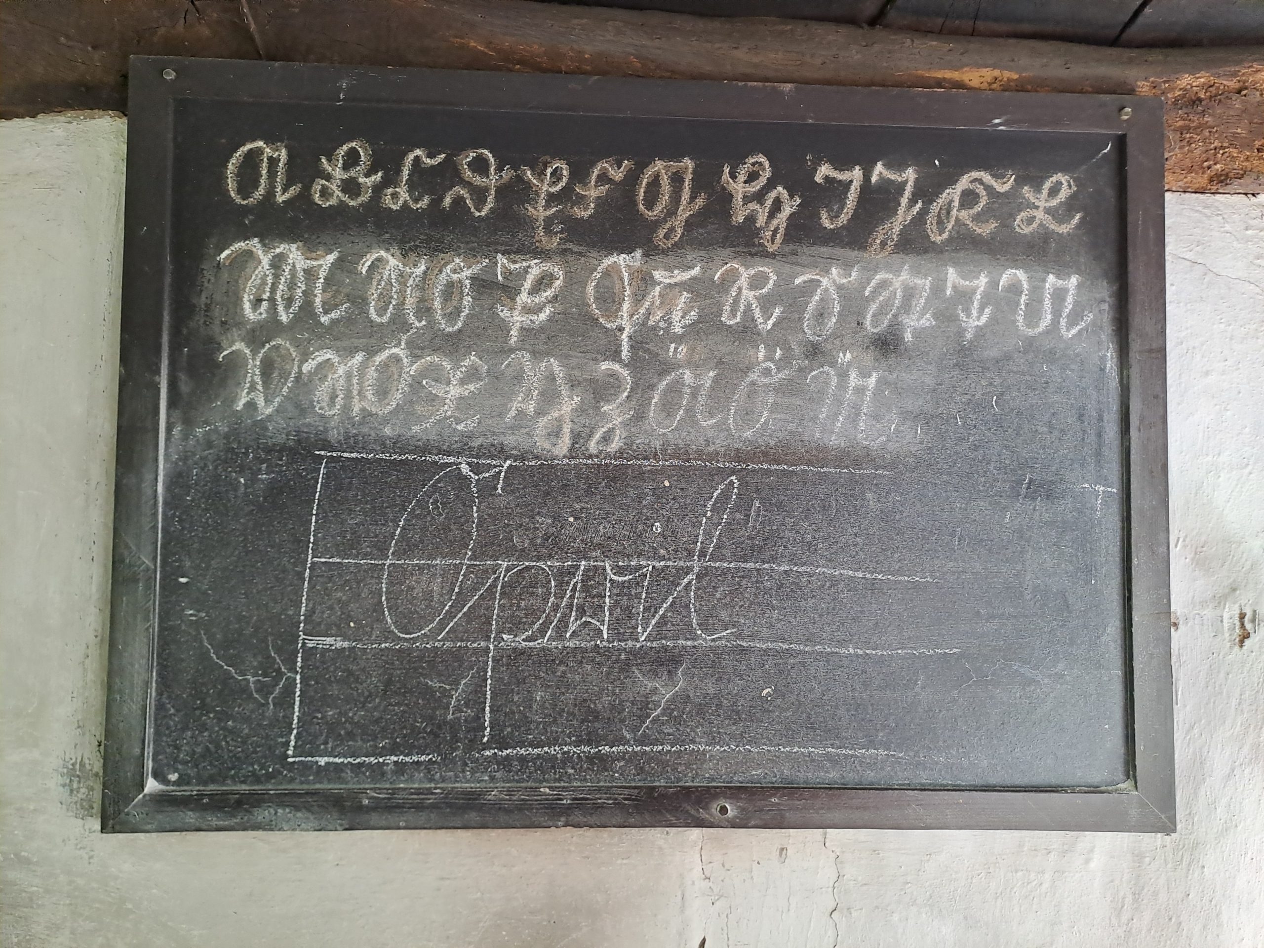 Doch nicht nur das Schreiben war neu. Auch die strengen Regeln (z.B. die Trennung von Mädchen und Jungen bereits vor dem Schulgebäude sowie im Klassenraum, die Positionierung der Hände auf dem Tisch, vorgeschriebene Frisuren, das Aufstehen beim Sprechen, das Verbot, unaufgefordert im Unterricht etwas zu fragen, der Rohrstock zur Bestrafung usw.) hinterließen bei den Kindern einen tiefen Eindruck. Geschrieben wurde zudem nicht in ein Heft, sondern auf eine kleine Kreidetafel. Als Schultasche hatte man einen kleinen Holzkasten. Wenn man gut gearbeitet hatte, so bekam man vom Herrn Lehrer ein Zeichen auf die Rückseite dieses Kastens geschrieben. Wer besonders viel richtig gemacht hatte und fleißig war, der bekam im Laufe der Zeit mehrere Zeichen. Daher stammt noch heute der Ausdruck: „Jemand hat viel auf dem Kasten“ für eine Person, die viel weiß. Interessant, nicht wahr?