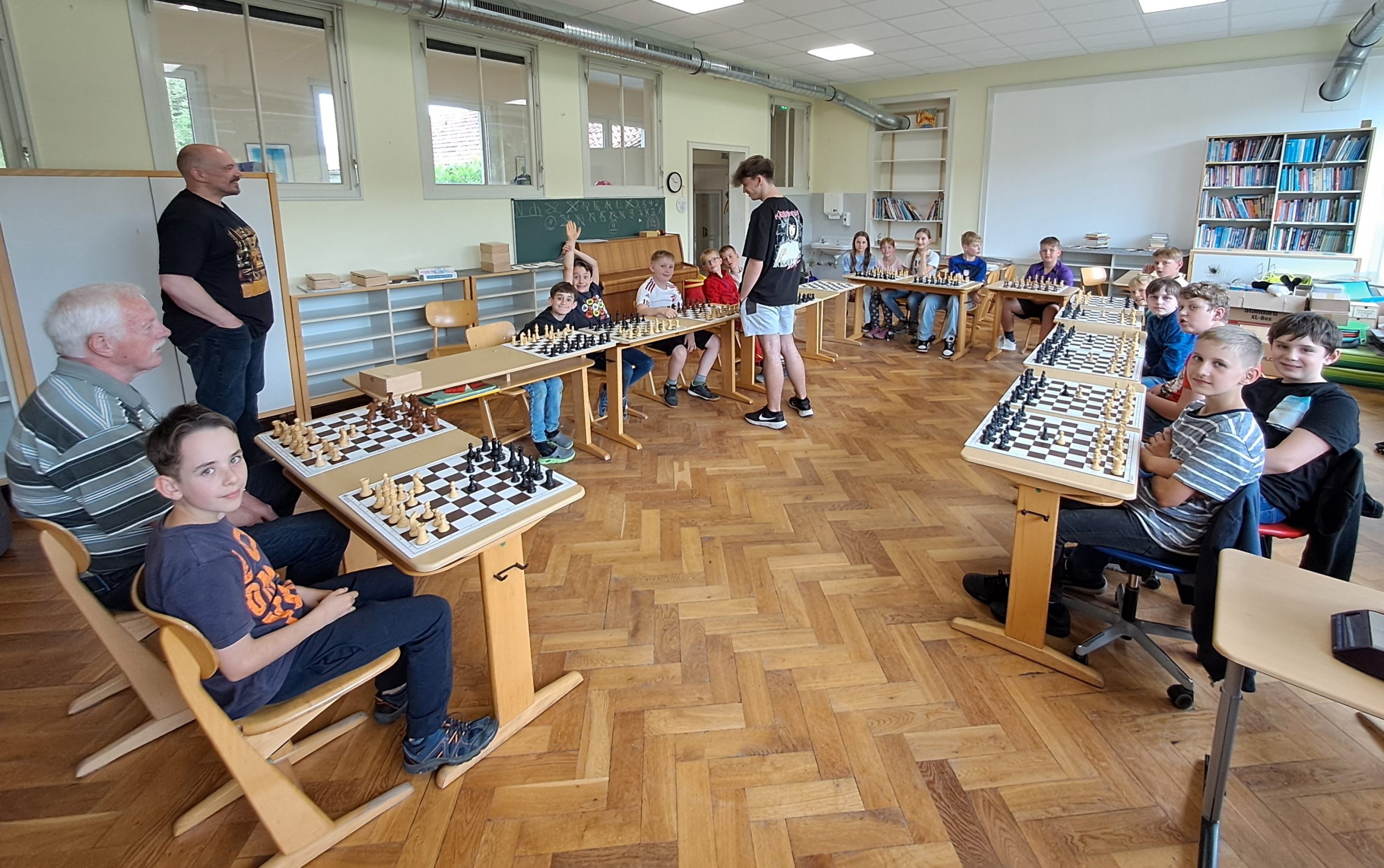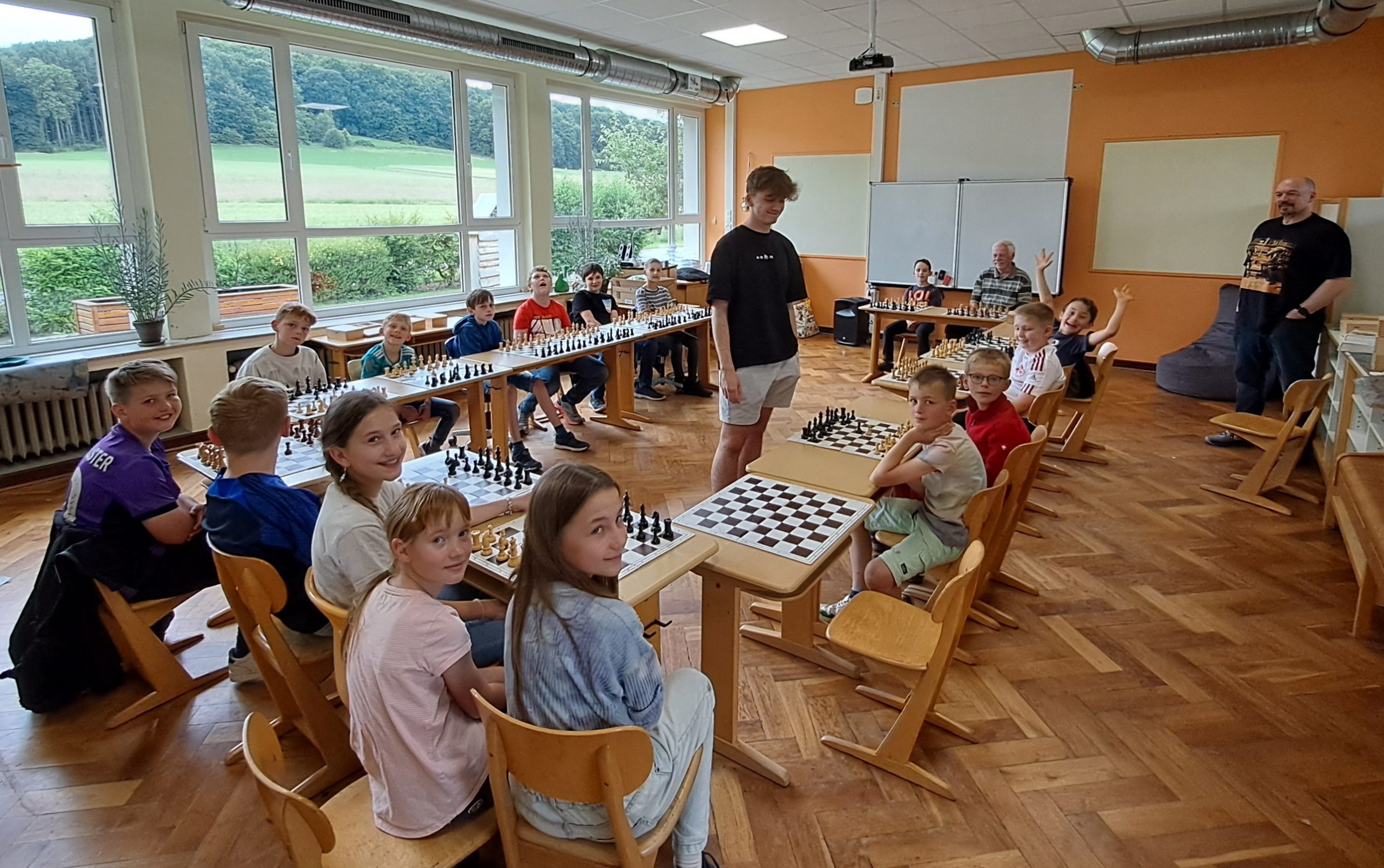 Am 20.06.2024 hatte die Wehrendorfer GOG-Schach-AG, die sich aus Schülern der Grundschule Wehrendorf, der Oberschule Bad Essen und des Gymnasiums Bad Essen zusammensetzt, Besuch. Max Jürgenpott, der beste Jugendspieler des Schachvereins Bad Essen, war zu Gast. Gemeinsam mit seinem Vater Frank Knorr, dem Jugendwart des Schachvereins, wies er die Teilnehmer der drei Schulen auf die neuen Möglichkeiten der Teilnahme an Jugendturnieren hin. Der Schachverein Bad Essen plant für die Bad Essener Kinder nämlich die Anmeldung mehrerer Jugendteams. In diesen Teams können die Kinder zukünftig regelmäßig gemeinsam an interessanten Mannschaftsspielen in der Region teilnehmen. Ein tolles Angebot. Alle Kinder sind dazu aufgerufen, sich gerne zu melden, wenn sie Teil der Mannschaften sein wollen. Daniel Adler und die Grundschule Wehrendorf können das Mitmachen in jedem Fall sehr empfehlen! Das Jugendtraining im Schachverein Bad Essen findet übrigens immer freitags um 17 Uhr im TriO in Bad Essen statt! Jedes Kind ist jederzeit herzlich eingeladen! Hier geht`s zur Homepage: http://www.svbadessen.de/index.php/jugend
