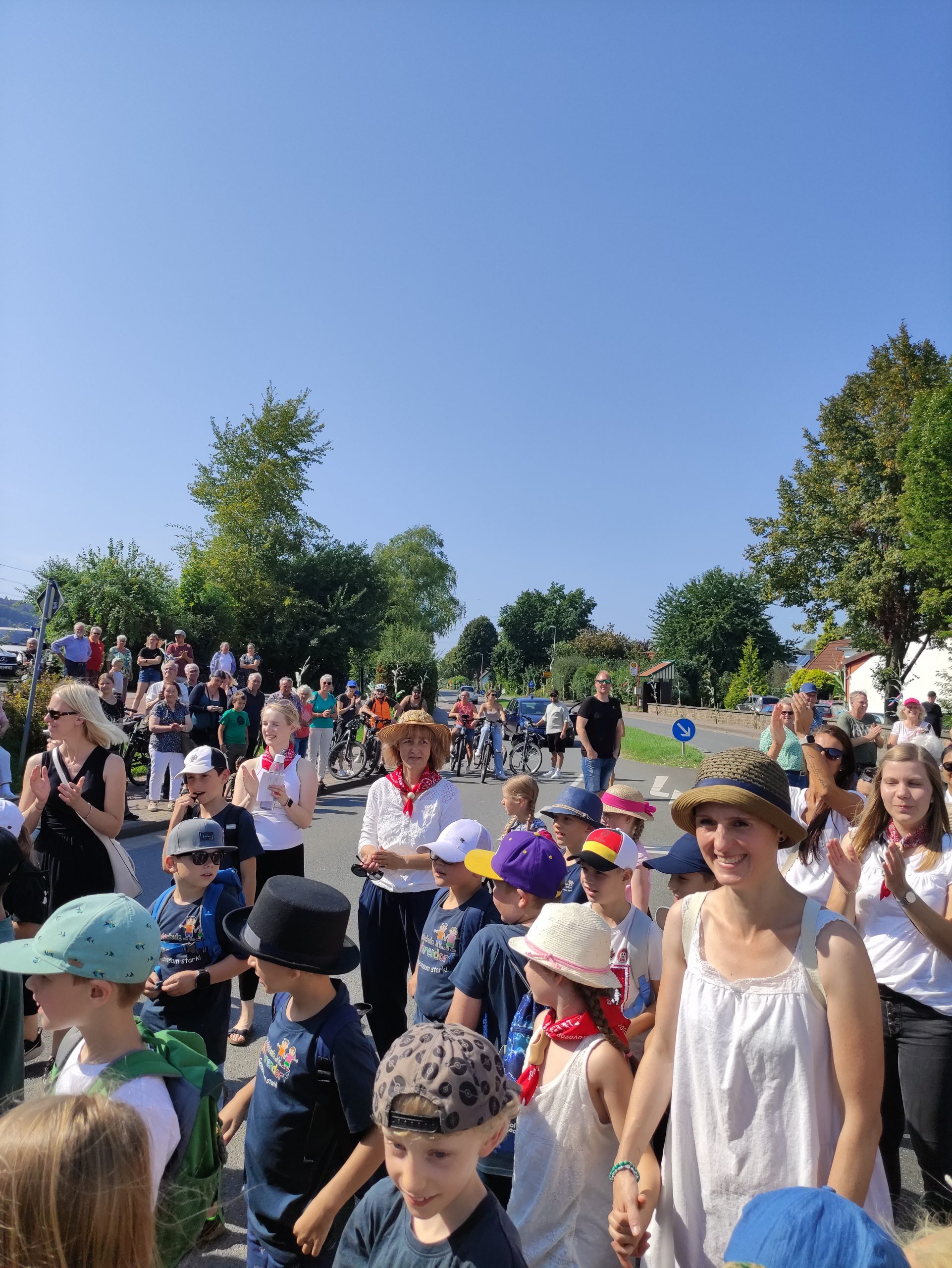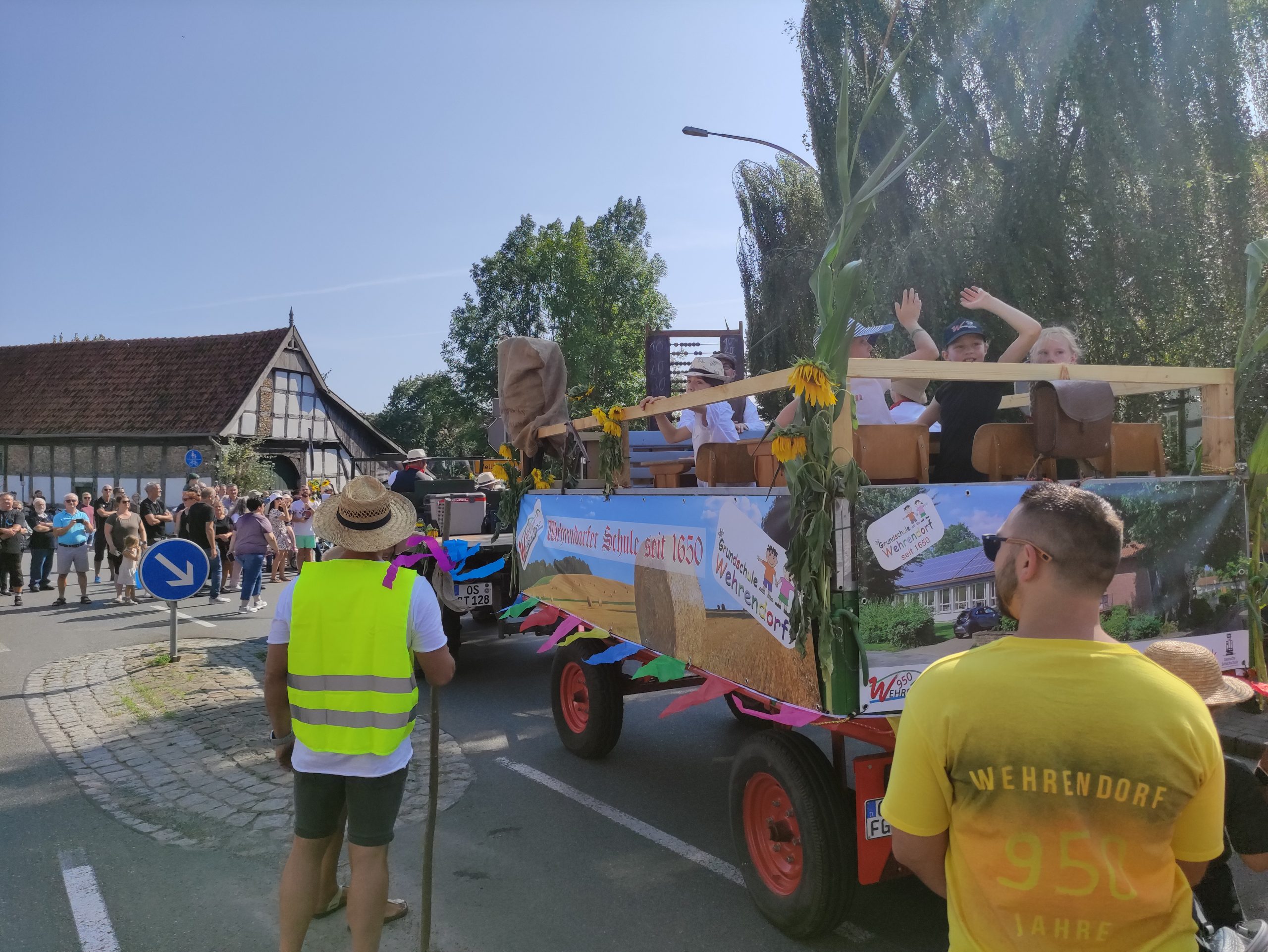 In Wehrendorf wurde ein besonderes Jubiläum gefeiert. Unser schöner Ort wurde 950 Jahre alt. Zu diesem Ereignis standen passenderweise natürlich große Feierlichkeiten an, die insgesamt über drei Tage gingen. Am 30.08.2024 fand im riesigen Festzelt in der Nähe der Schule die Eröffnungsfeier statt. Auch die Grundschule Wehrendorf war natürlich dabei.