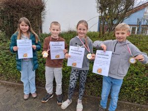 Außergewöhnlich großen Einsatz beim Zusammentragen von Spendengeldern zeigten dabei Lotta Kleindienst, Leander Aufderhaar, Tayler Stumpf und Annabelle Respondek, die an unzähligen Türen klingelten und daher für ihr besonderes Engagement für Mitmenschen und Natur von der Schule geehrt wurden. Super gemacht, Kinder!