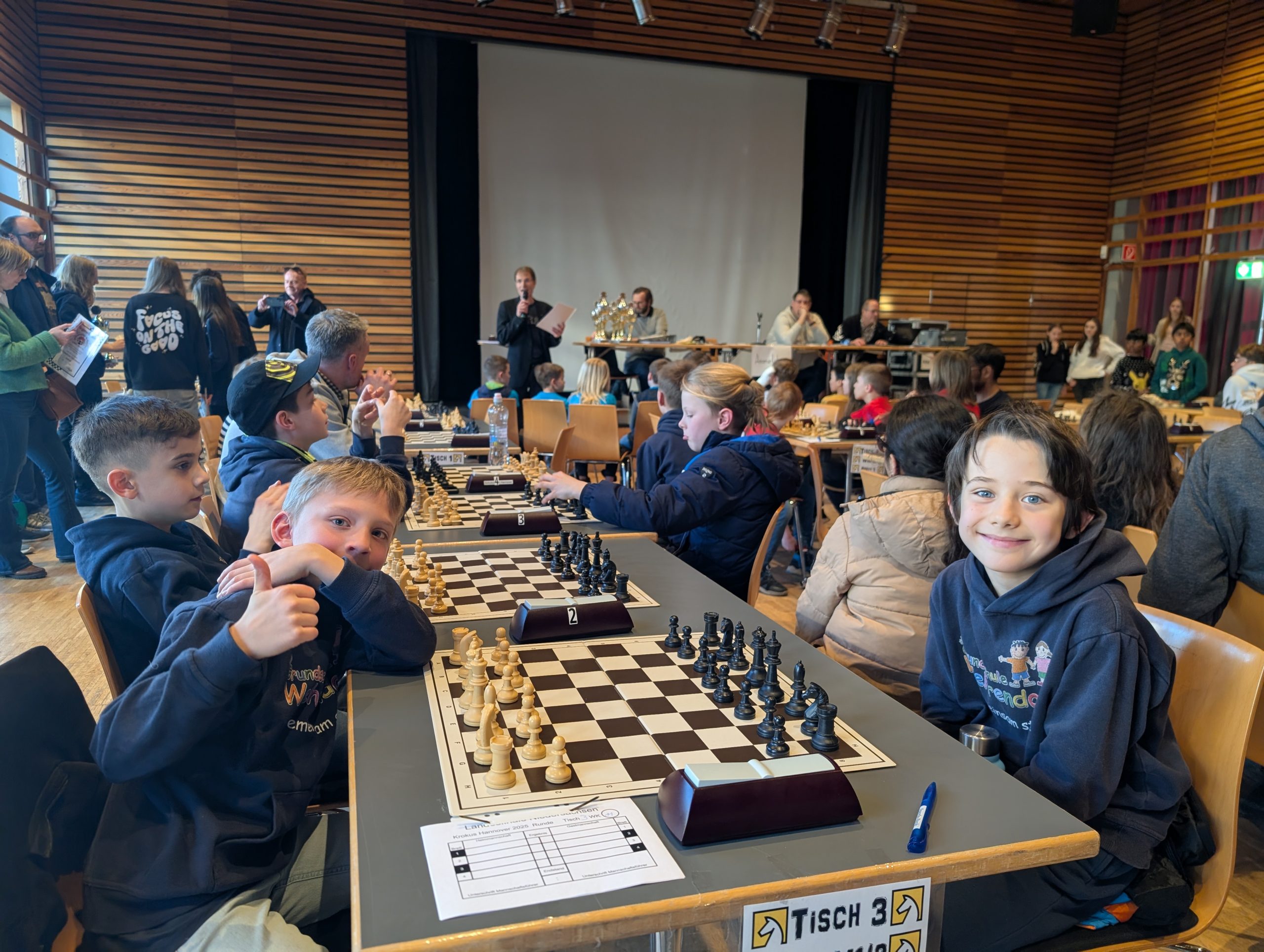 Doch zum Glück besannen sich die Kinder im Anschluss auf ihre tollen schachlichen Fähigkeiten und der Knoten platzte: einem knappen 2,5:1,5 gegen die Driebeschule Königslutter in Runde 4 folgte ein extrem souverän herausgespieltes 4:0 gegen die Grundschule Steinbeck aus Buchholz in der Nordheide in der 5. Runde.