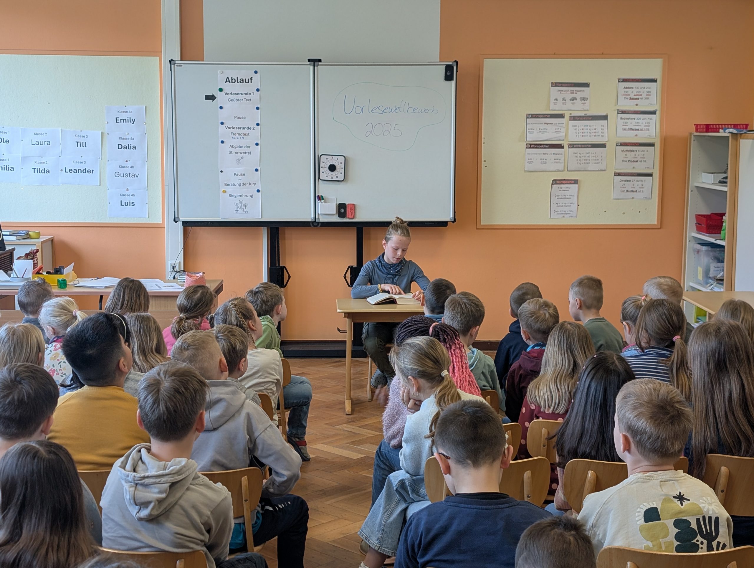 Am 02.04.2025 war die Spannung mal wieder groß, denn in der GSW stand der jährliche Vorlesewettbewerb an. Hierfür hatten alle Kinder der Klassen 1 bis 4 in den vergangenen Wochen gemeinsam mit der Klassenlehrerin, den Eltern und Freunden fleißig geübt und dadurch Flüssigkeit und Betonung in ihren Vorträgen stetig verbessern können.