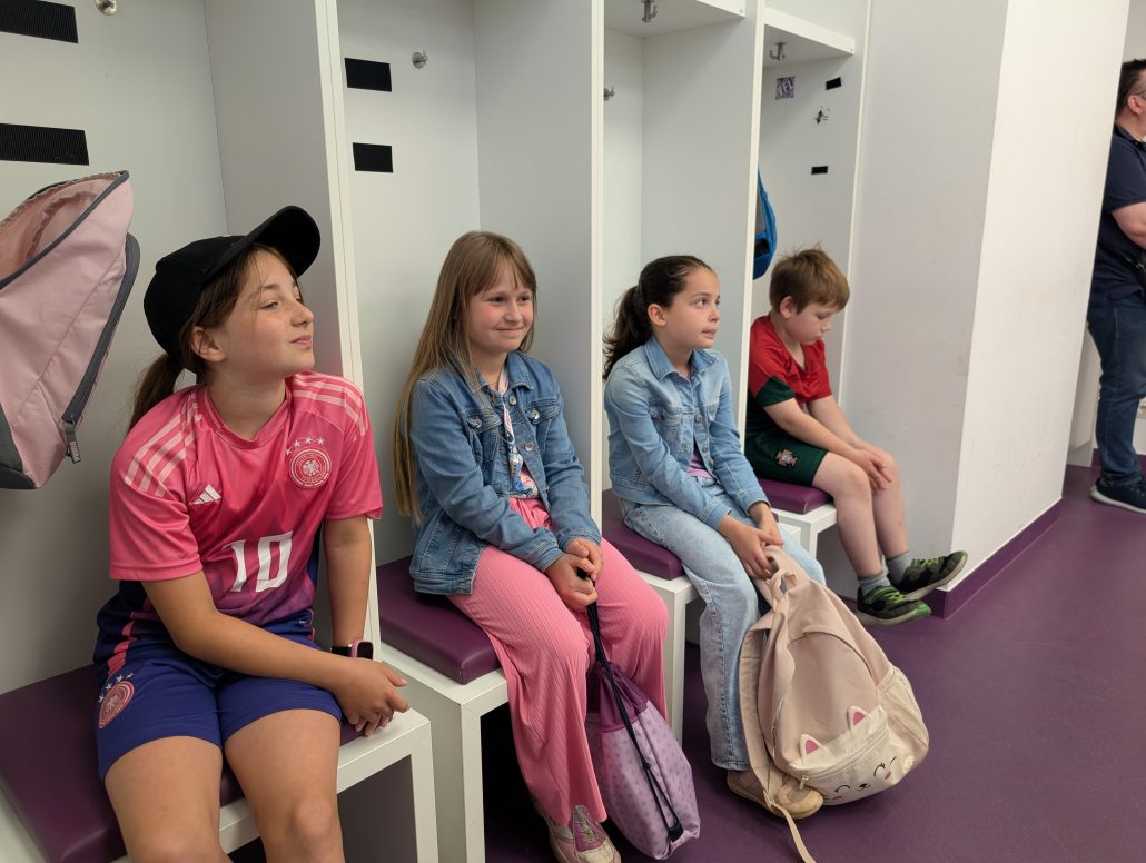 Alle Kinder waren voller Vorfreude und so wurde am 19.06.2025 zur Einstimmung im Klassenraum zunächst die Hymne des VfL gehört: „Wir, die Fans aus der Ostkurve, wir sind steht`s für dich bereit…“. Einige Kinder kannten bereits den Text auswendig und konnten spontan mitsingen.