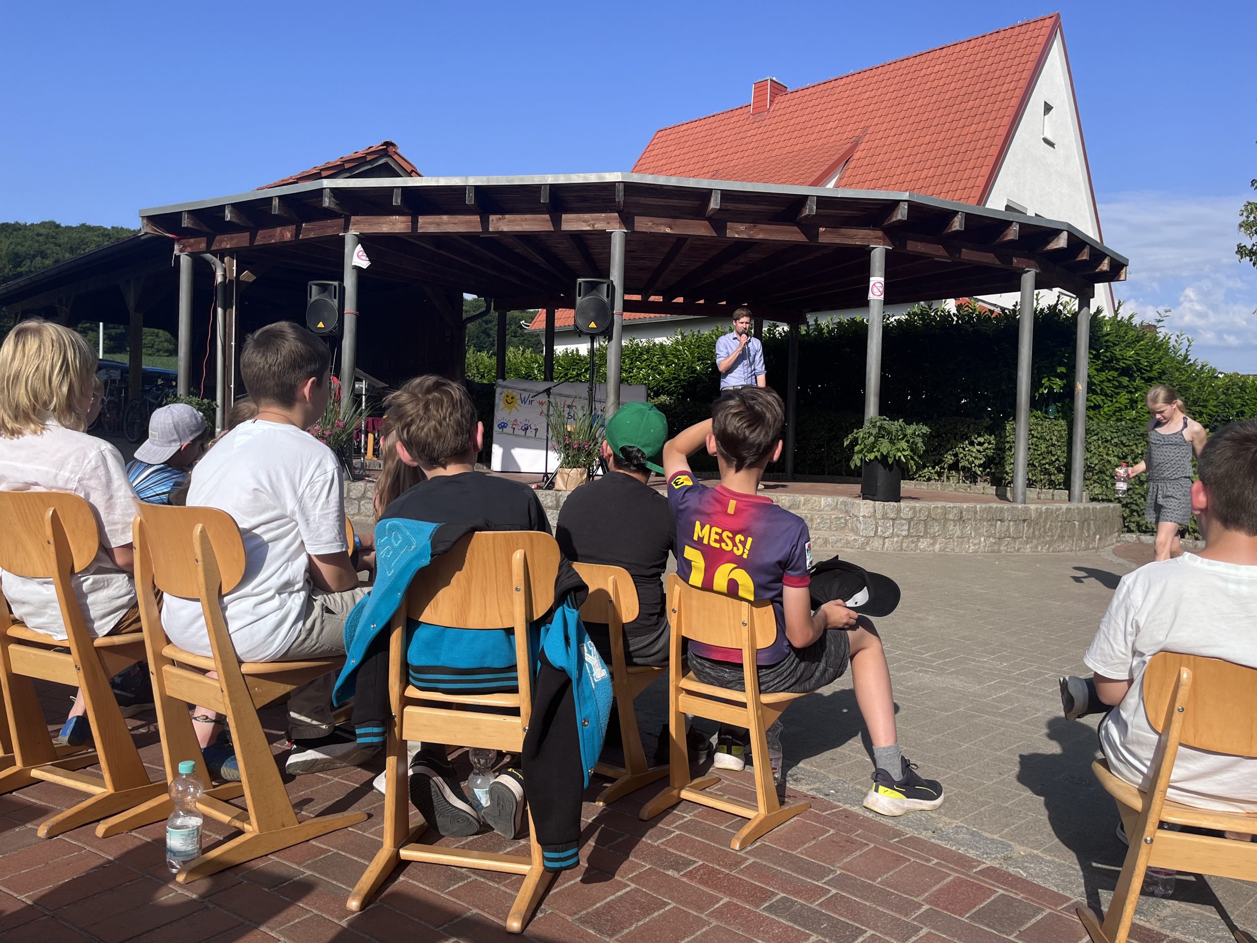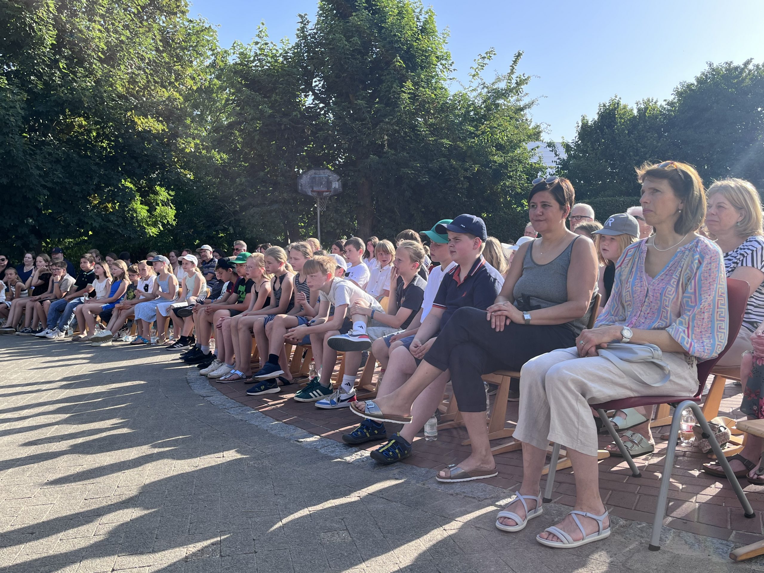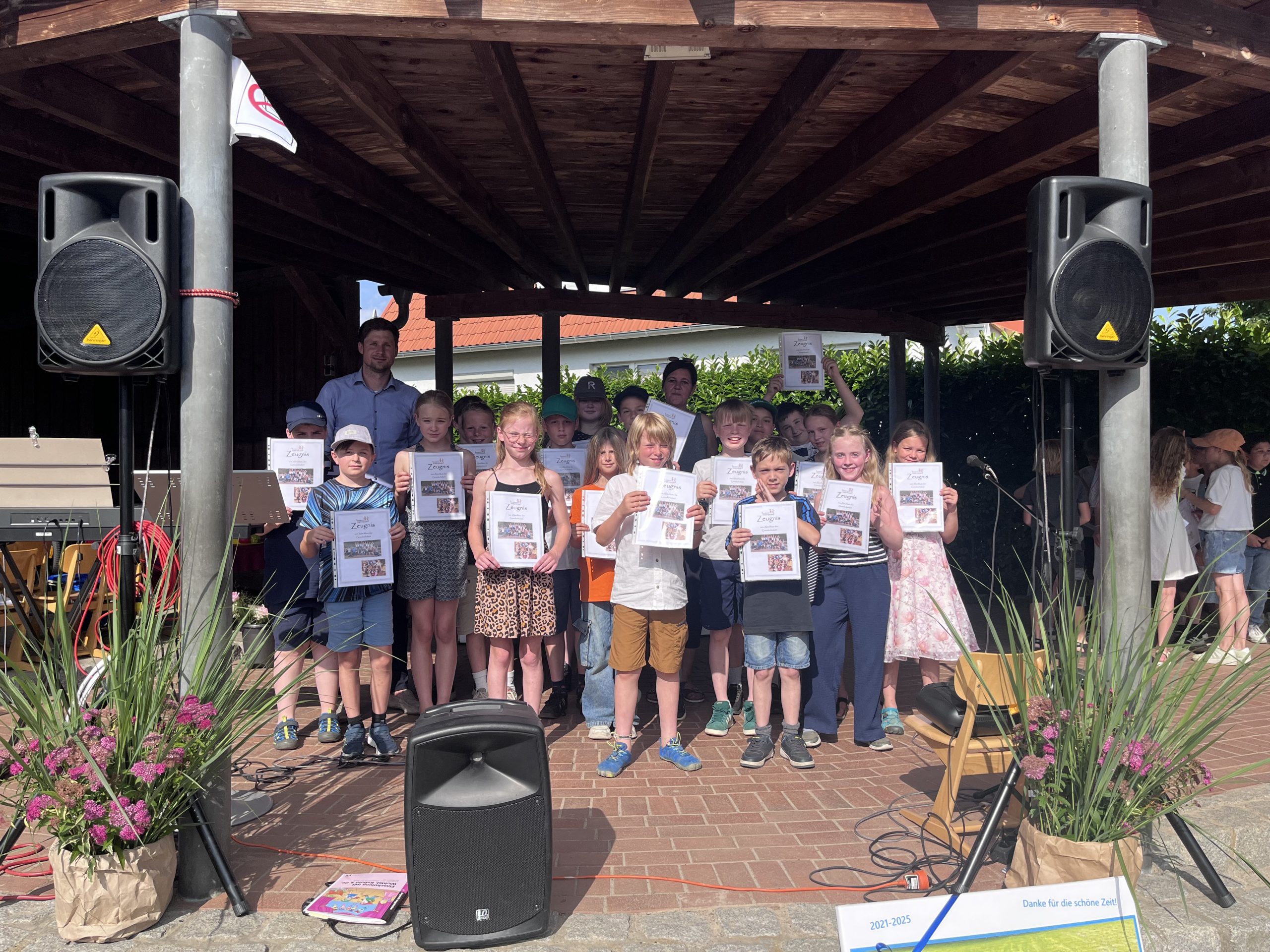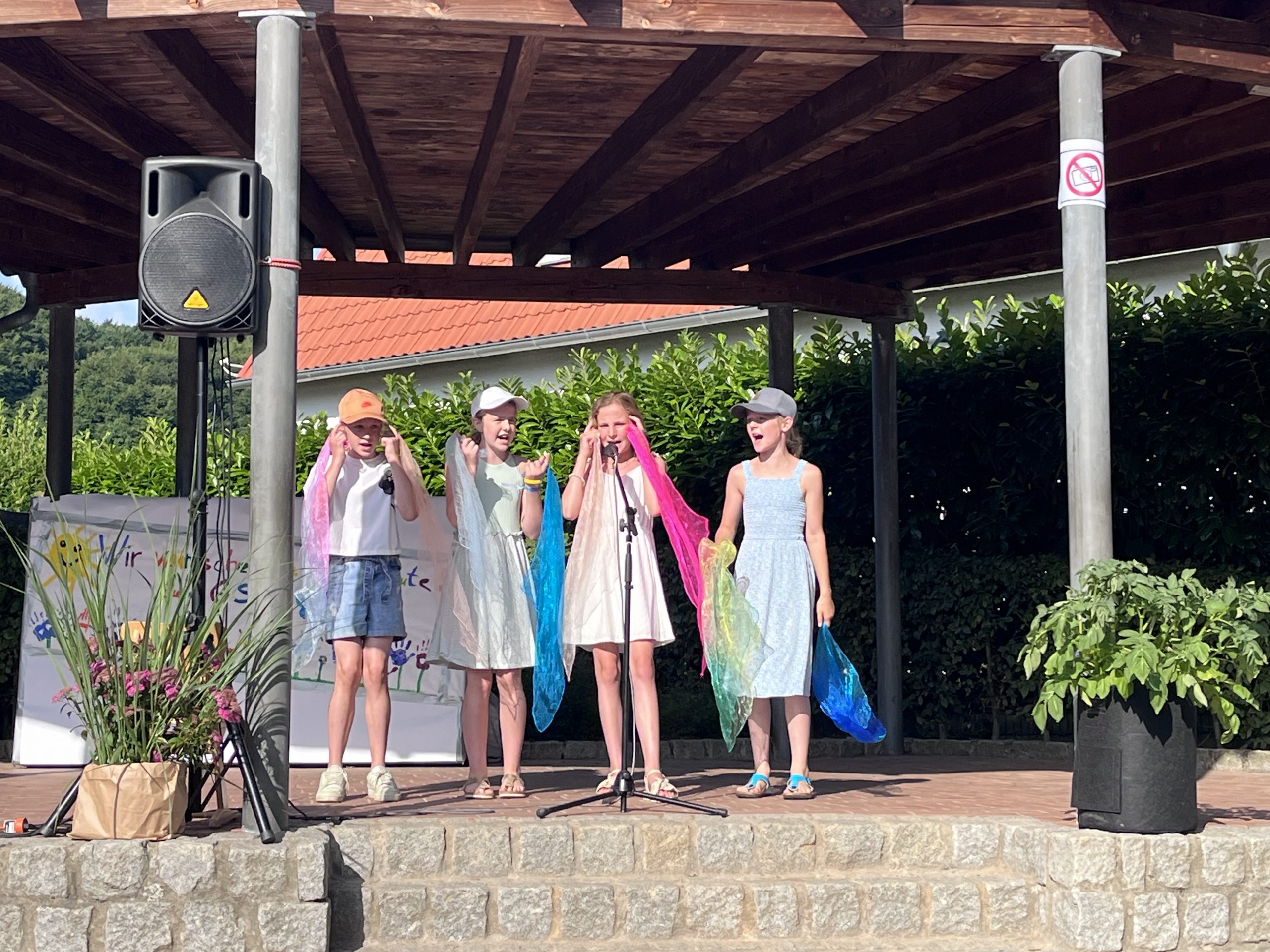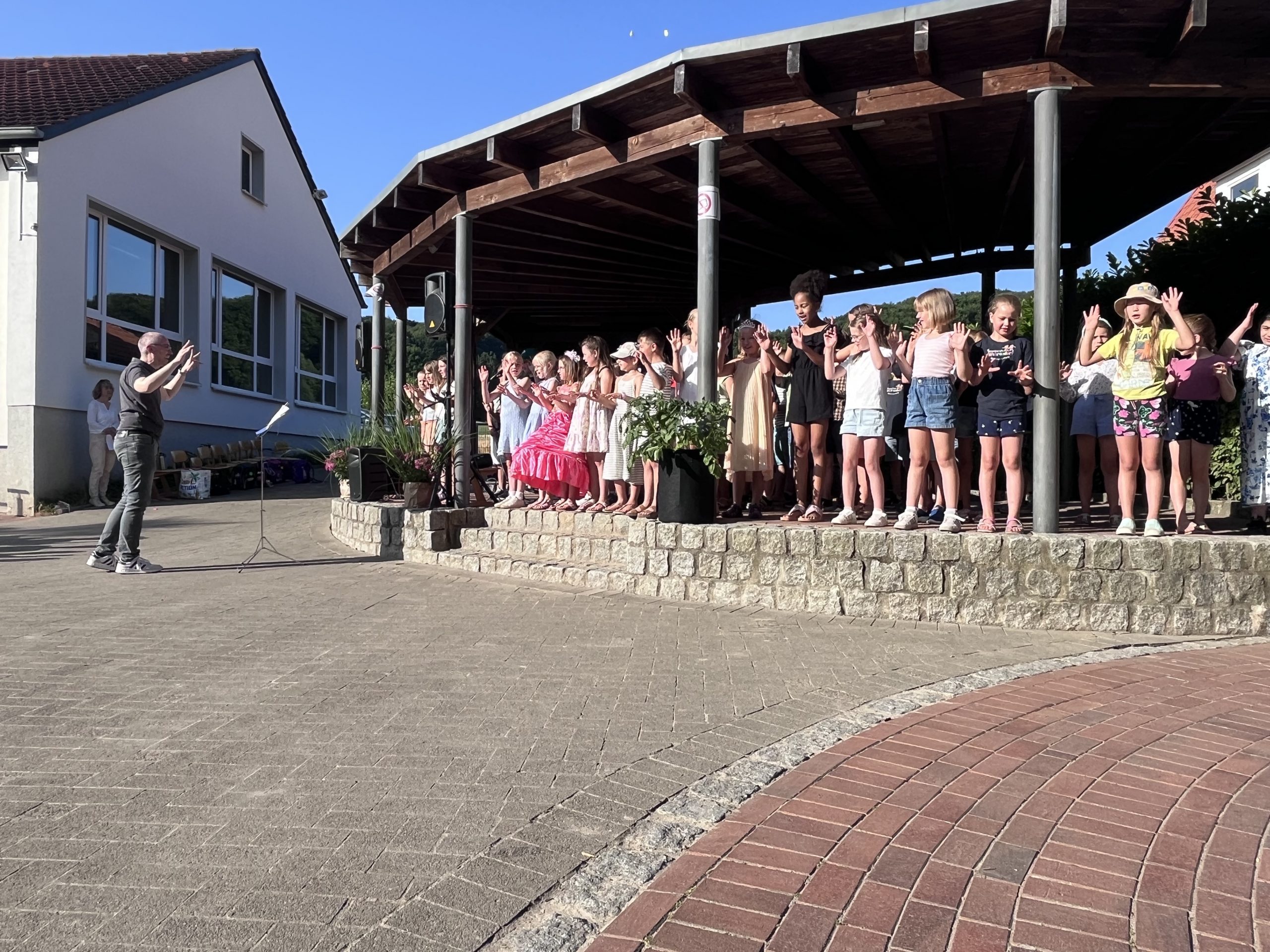 Spätestens mit dem Song „Ferienlied“ war allen Anwesenden klar, dass es auch für den Rest der Schülerschaft für dieses Schuljahr der letzte Tag war, denn alle Kinder schmetterten begeistert die Liedzeilen: „Die Schule ist vorbei! Sechs Wochen hab`n wir frei, denn die Ferien sind da!“