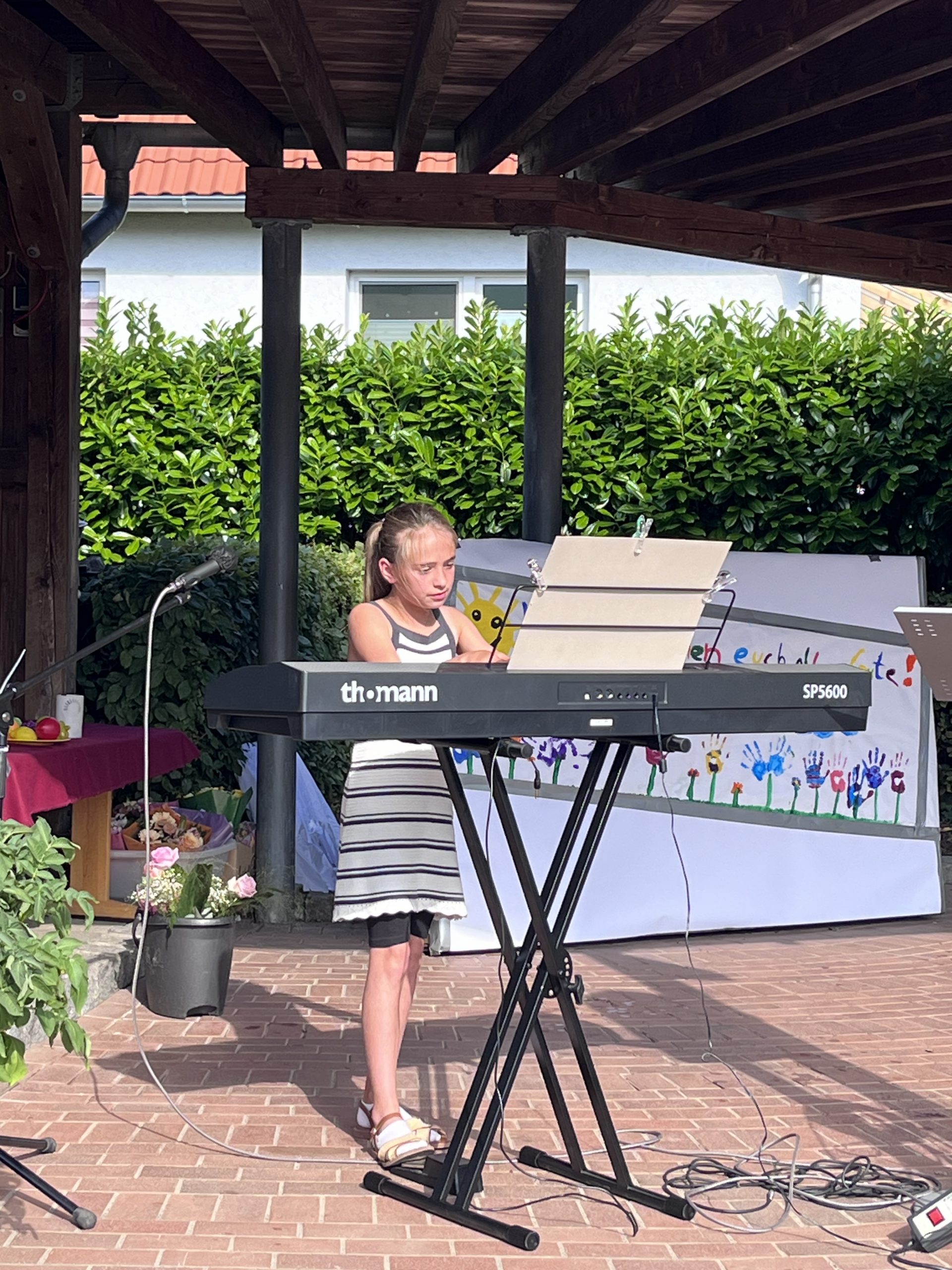 Der nächste musikalische Auftritt wurde von Amelie Reiswich aus der Klasse 4a aufgeführt. Sie spielte eine langsame Ballade auf dem Klavier, die die Gedanken zum Verweilen einlud.