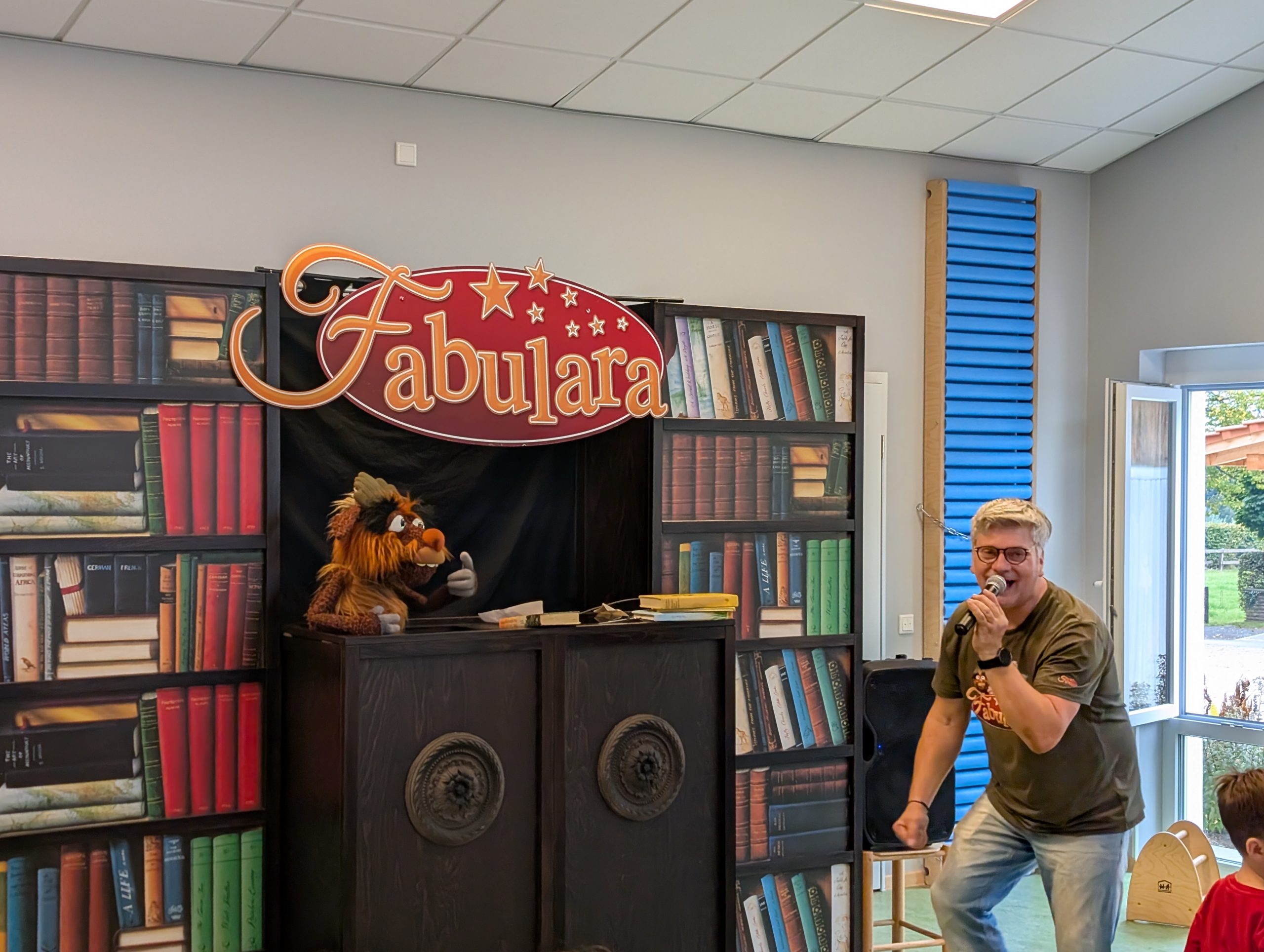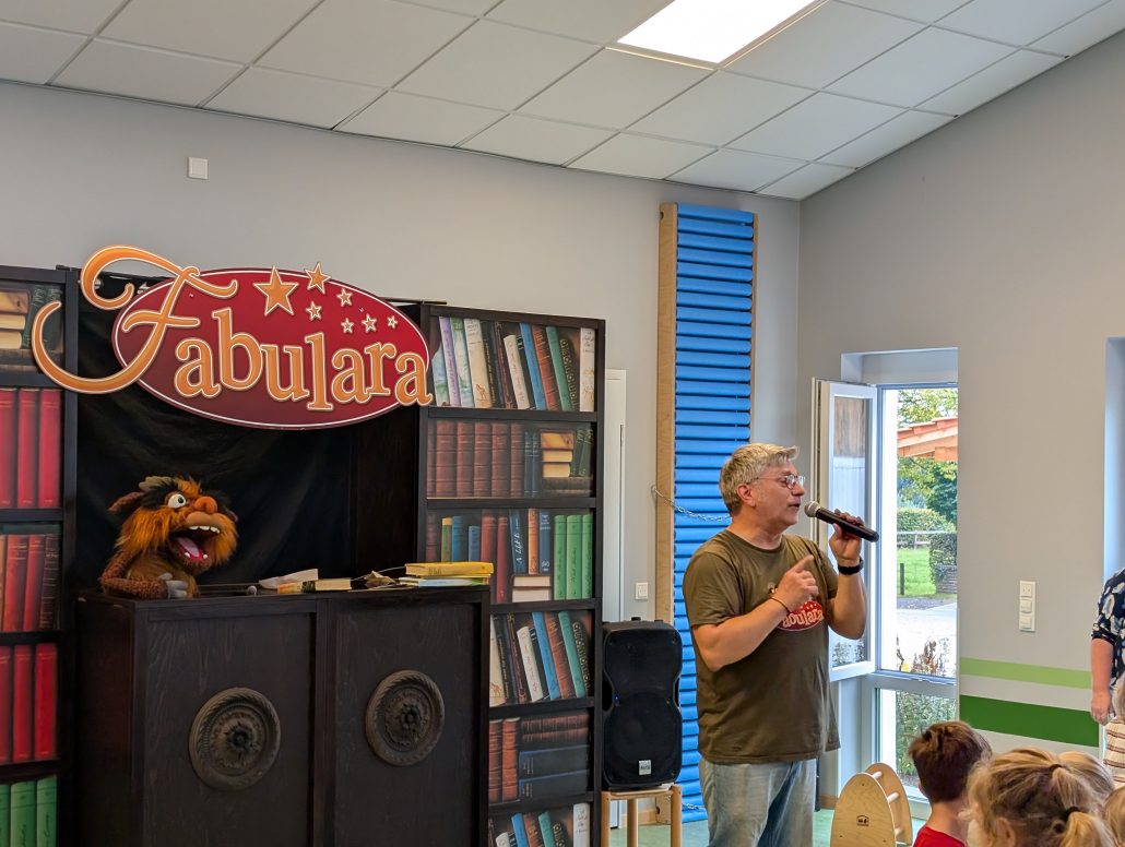 Ein ganz besonderes Erlebnis durften unsere Schülerinnen und Schüler am 29.09.2025 kurz vor den Herbstferien genießen: „Fabulara“ – das musikalische Lesetheater mit Yogi und seinen zwei bezaubernden Fabelwesen Baba Book und Laila Musica – machte Station an unserer Schule.