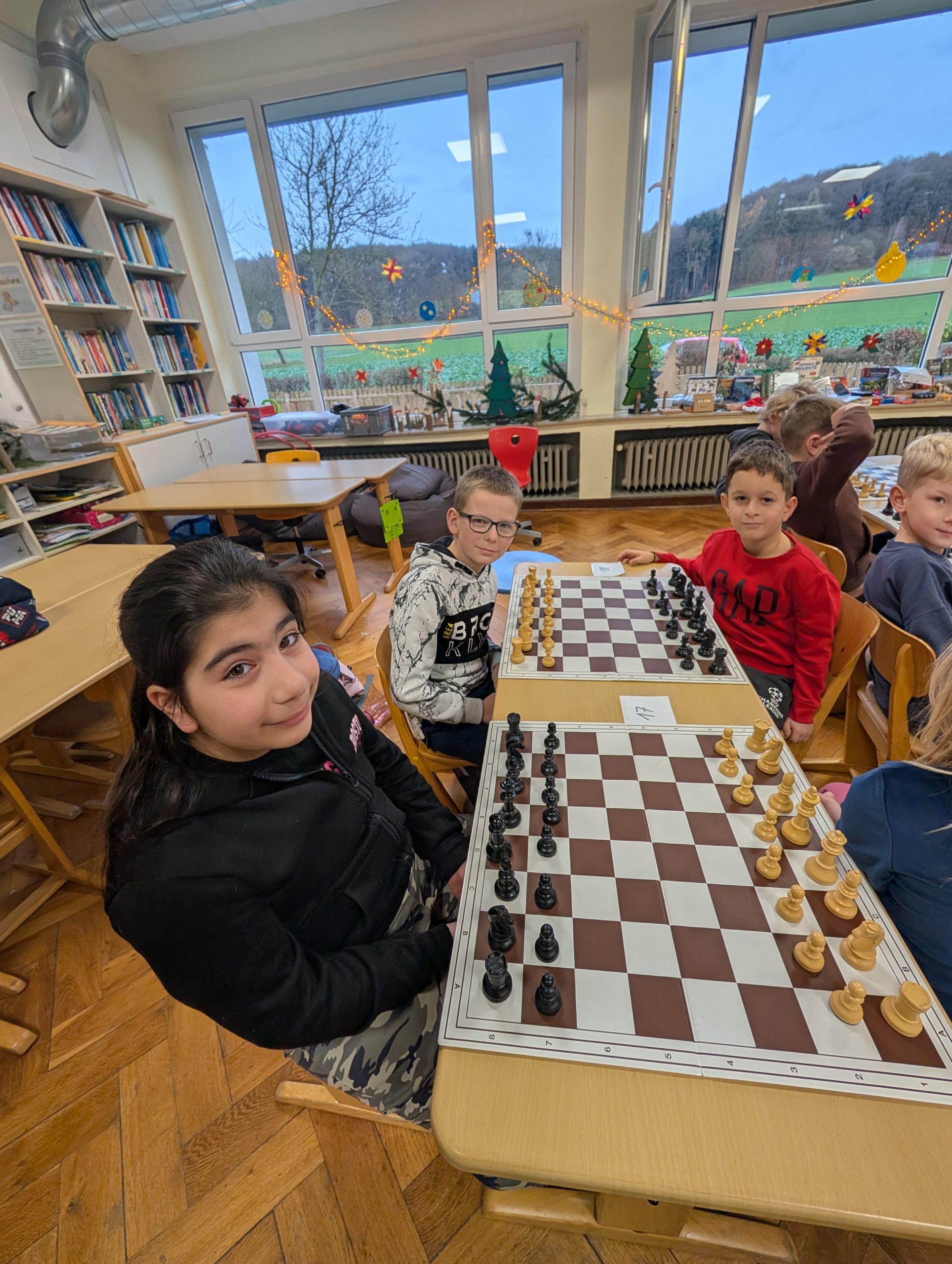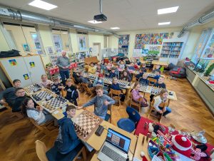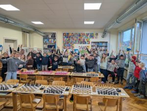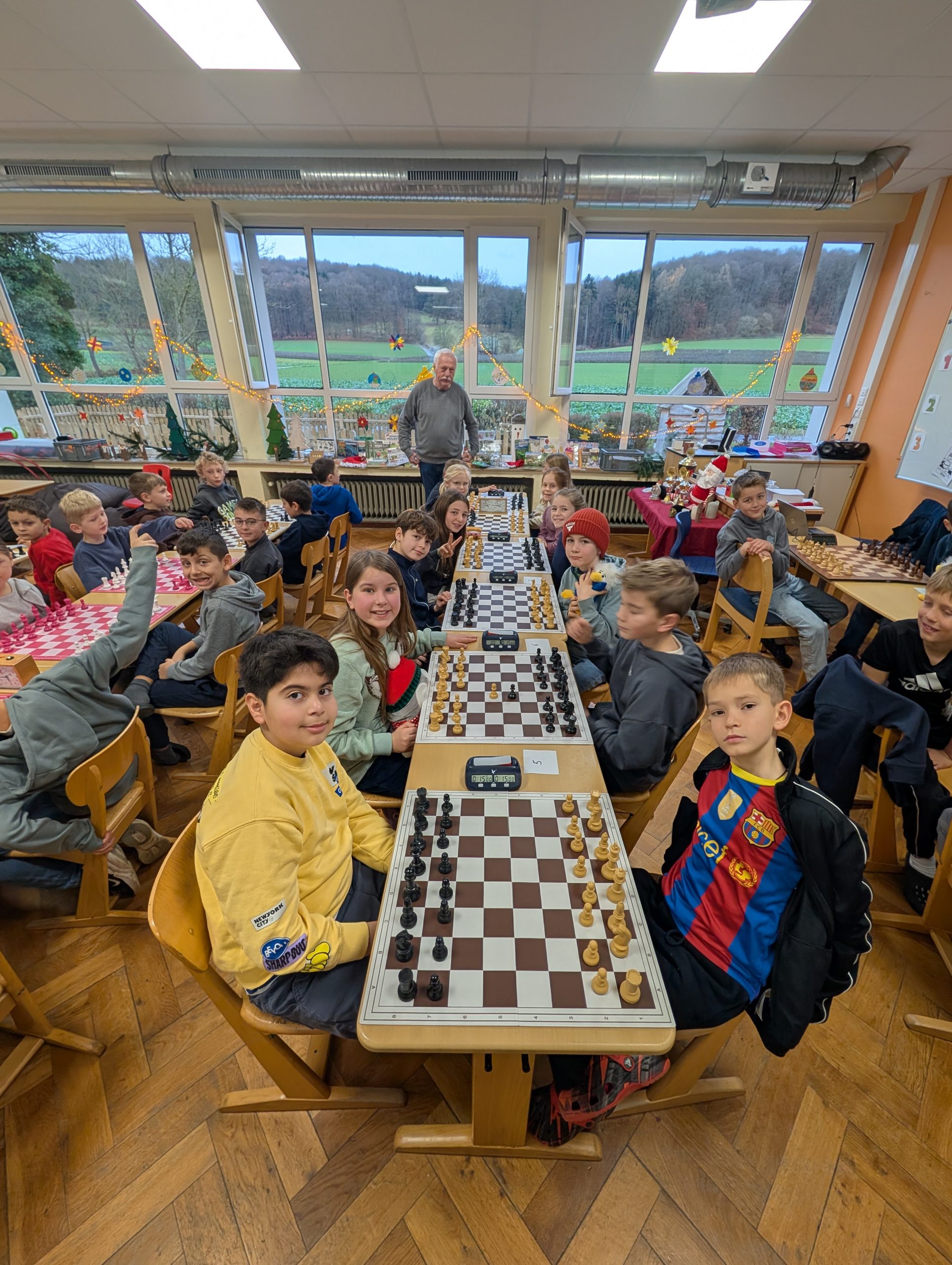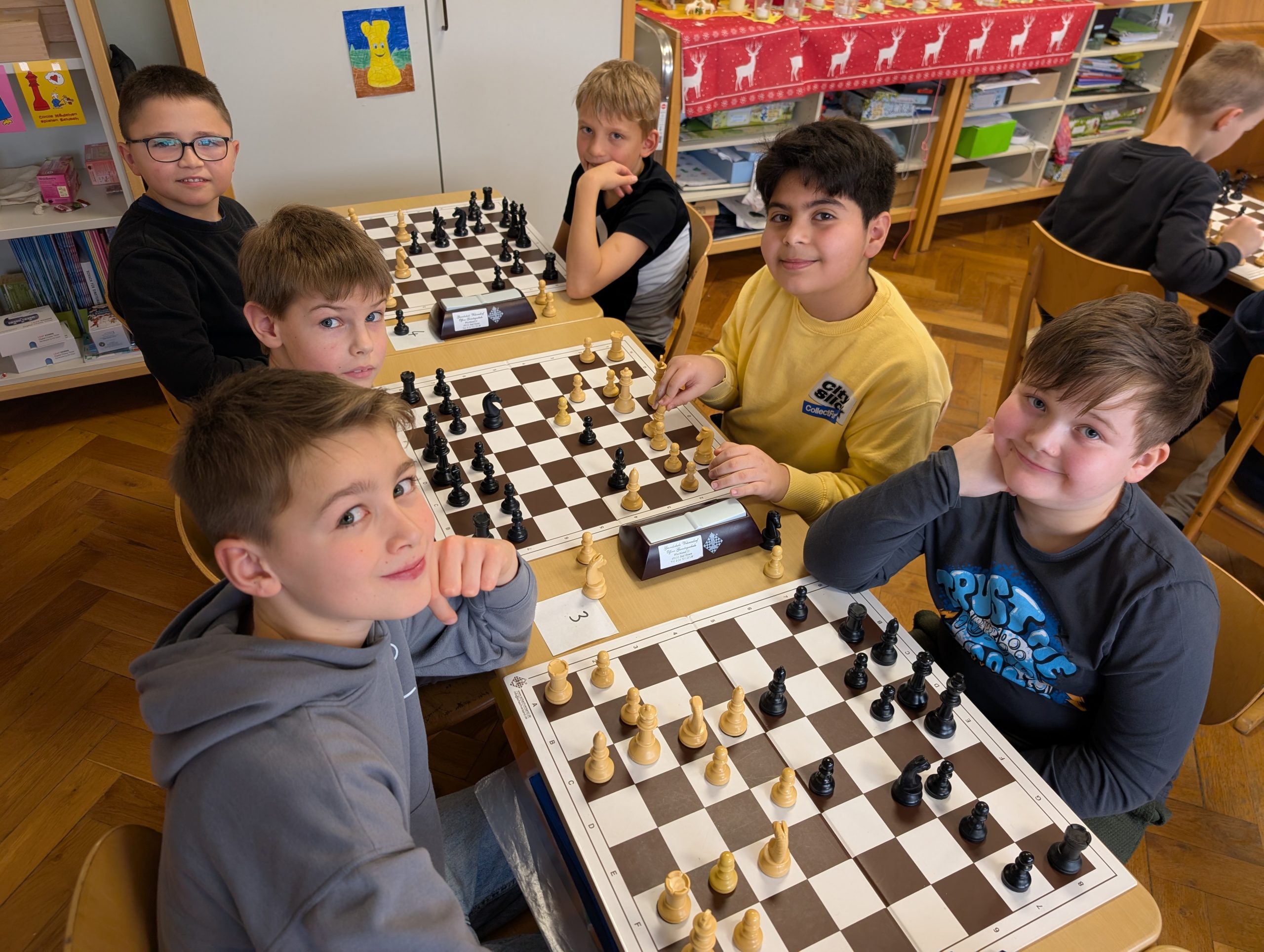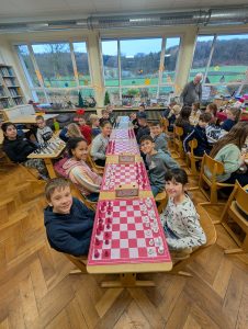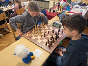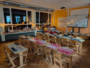 Doch nun zum Jahr 2025. Für das Turnier am 09.12.2025 hatten sich insgesamt 37 Kinder angemeldet und fieberten über mehrere Wochen dem Ereignis entgegen. Großer Favorit war der letztjährige Schulsieger Damian Ksionsko aus Klasse 3, der auch in der GOG-Schach-AG im Duell mit deutlich älteren Schülern vom Gymnasium Bad Essen und Oberschule Bad Essen regelmäßig seine Gegner das Fürchten lehrt. Würde er dem Druck standhalten und heute seinen Vorjahrestitel verteidigen können?