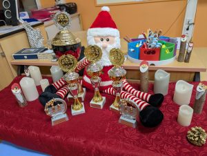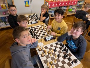 Platz 2 ging an den bereits erwähnten Till Tontrup (6S-1N), der in einer spannenden Partie Leander knapp besiegen konnte. Auf Platz 3 gab es eine Überraschung: Thore Mundrziewski aus Klasse 3 konnte u.a. durch tolle Siege gegen Eliah Fafengut (Grundreihenmatt) und Lucas Jost bis in die Spitzengruppe vordringen und entging durch ein Patt seiner Gegnerin Madlen Wetzel an einer Stelle einer drohenden Niederlage. Doch wie sagt man so schön, das Glück ist mit den Tüchtigen! Somit zahlten sich seine vielen fleißigen Übungsstunden verdient aus. Dahinter war das Teilnehmerfeld sehr dicht beieinander: Platz 4, 5 und 6 gingen an Dmytro Zakharevych, Eliah Fafengut und Leander Aufderhaar (jeweils 5S-2N). Luca Jost, Lucas Henning und Luca Toma kamen mit je 4 Siegen und 3 Niederlagen auf Platz 7, 8 und 10. Den Pokal für das beste Mädchen 2025 sicherte sich nach konzentrierter Leistung Annabelle Respondek aus Klasse 4 mit dem 9. Platz. Bester Nachwuchsspieler aus Jahrgang 1/2 wurde mit ebenfalls 4 Siegen und 3 Niederlagen Jonah Voß auf Platz 12, den Wanderpokal für die punktbeste Klasse holte mit hauchdünnem Vorsprung die Klasse 4.