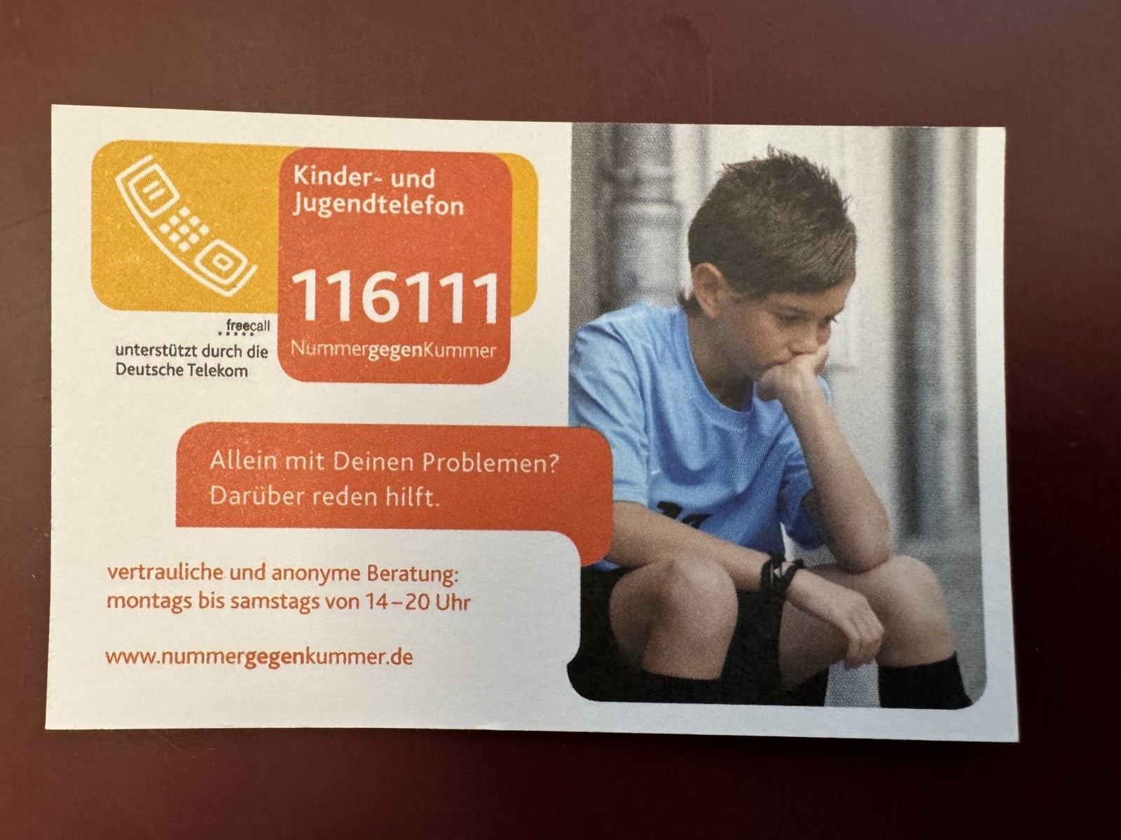 Am Ende wurde jeder Klasse ein großes Plakat mit Informationen sowie jedem Kind eine Visitenkarte des Kinder- und Jugendtelefons, die sogenannte „Nummer gegen Kummer“, übergeben. Unter der Telefonnummer 116 111 erhalten alle Kinder jeden Alters hier von montags bis samstags zwischen 14 und 20 Uhr anonym und kostenlos telefonische Beratung, wenn sie Sorgen oder Probleme haben. Teilen Sie diese Telefonnummer gerne allen Familien mit Kindern mit, die Sie kennen!